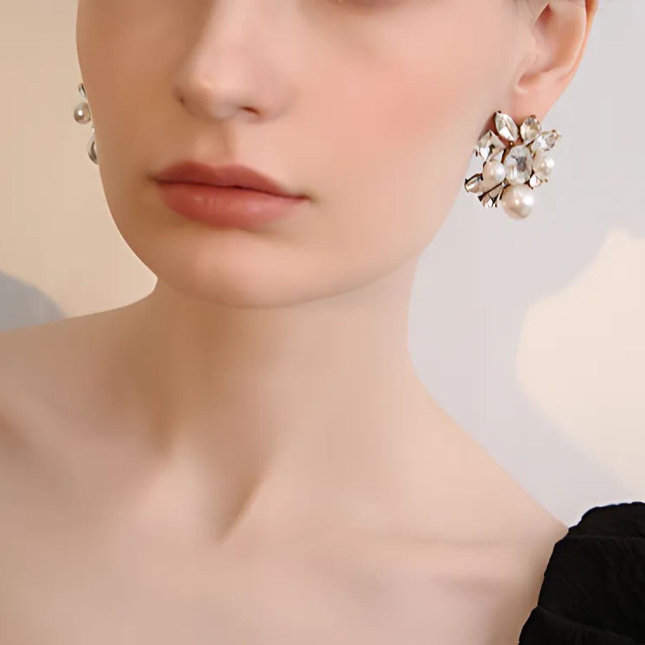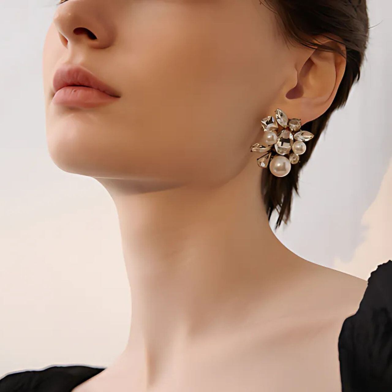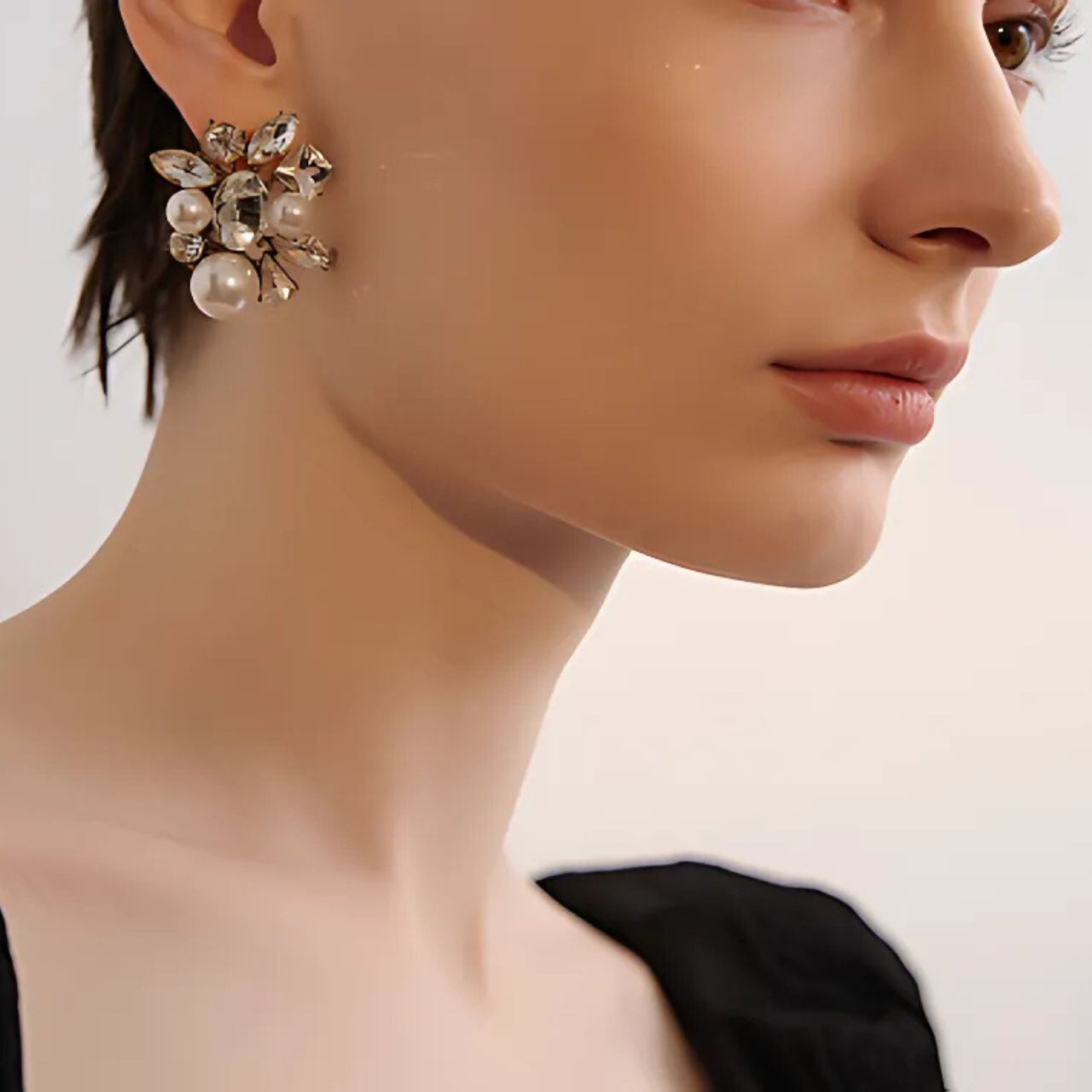 クリスタルとパールの輝きが、顔周りを明るく照らします。
