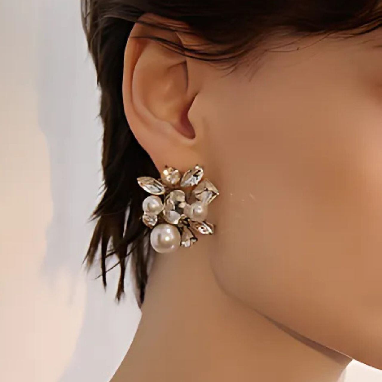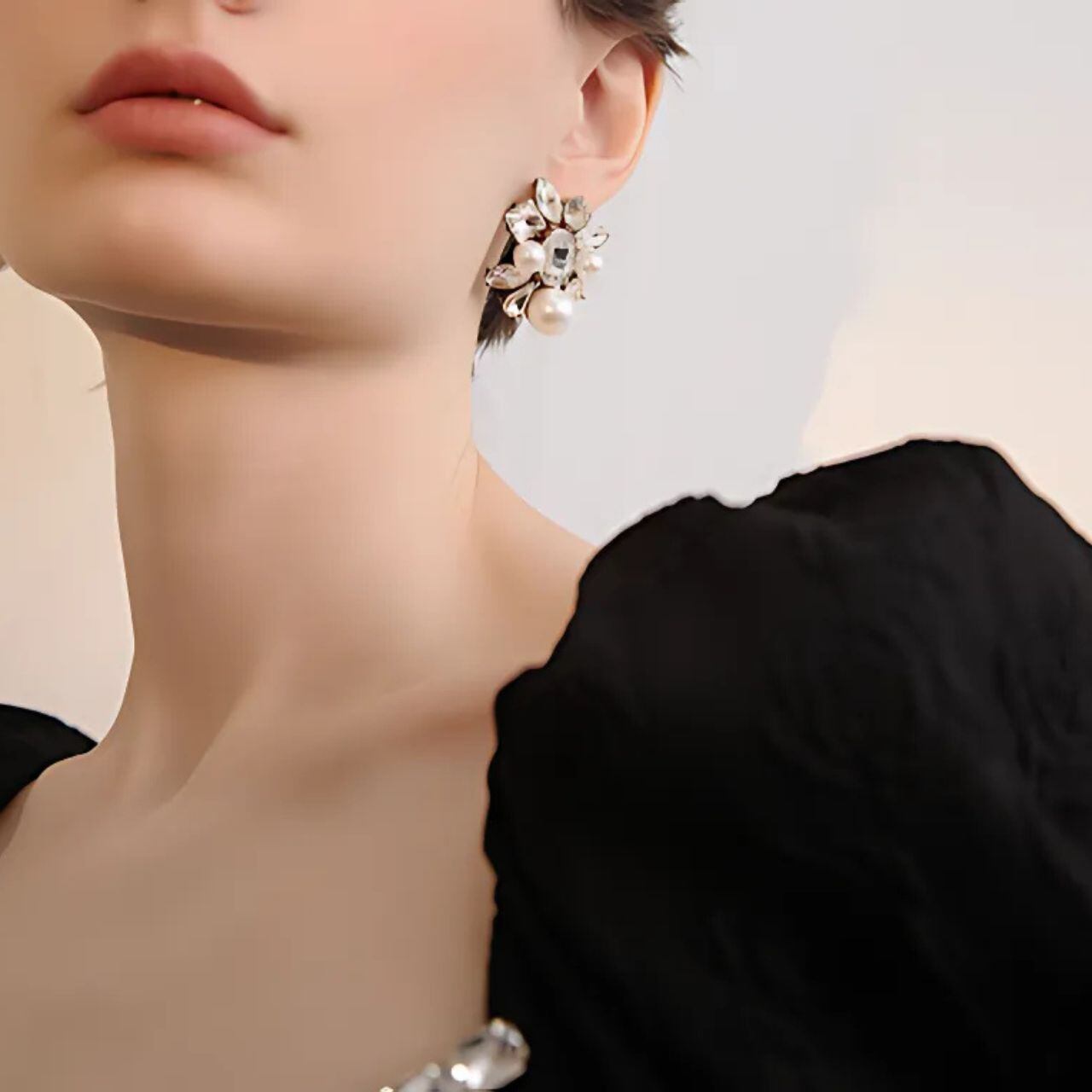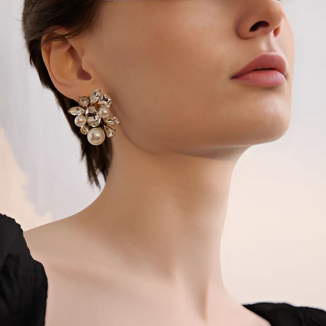 クリスタルとパールの輝きが、顔周りを明るく照らします。