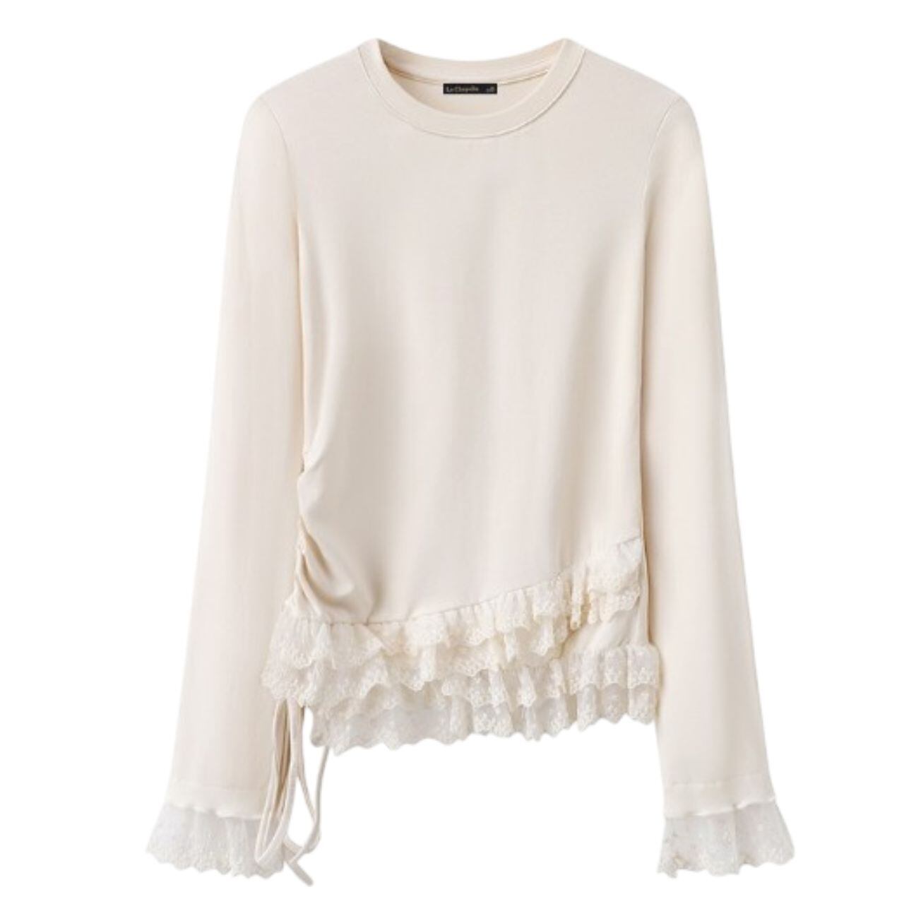 【商品詳細】 ドローストリングと繊細なレースのトリムが特徴的なクルーネックプルオーバー。 裾のティアードレースがフェミニンなアクセントをプラスし、シンプルなデザインながらも存在感のある一着です。 デイリーユースはもちろん、特別な日の装いにも活躍します。さりげないデザインが、様々なボトムスと好相性です。 【サイズ】 S 肩幅:33cm 胸囲:76cm 着丈:63cm 袖丈:54cm M 肩幅:34cm 胸囲:80cm 着丈:64cm 袖丈:55cm L 肩幅:35cm 胸囲:84cm 着丈:65cm 袖丈:56cm XL 肩幅:36cm 胸囲:88cm 着丈:66cm 袖丈:57cm ※採寸方法により1~3cmの誤差がある場合がございます。 【カラー】 アイボリー 【素材】 ポリエステル 【お届けについて】 こちらの商品は海外店舗より直接発送となる為、ご入金から1週間〜3週間前後で発送致します。 ◼️注意事項 ・タイミングによっては 商品在庫切れにより注文キャンセルとさせていただく恐れもございますので、予めご了承くださいませ。 ・こちらは輸入品となります。 日本製とは検品基準が異なる為、新品未使用品でもごくわずかな汚れや傷がある場合もございます。 ・商品の色味は、お手持ちのスマートフォンの画面によって実物と若干異なる場合がございます。 ・イメージ違いやサイズ等、お客様都合による交換、返品、キャンセルは対応出来かねます。 ———————————— ご購入前にこちらをお読みください →https://favorimarche.base.shop/about ————————————