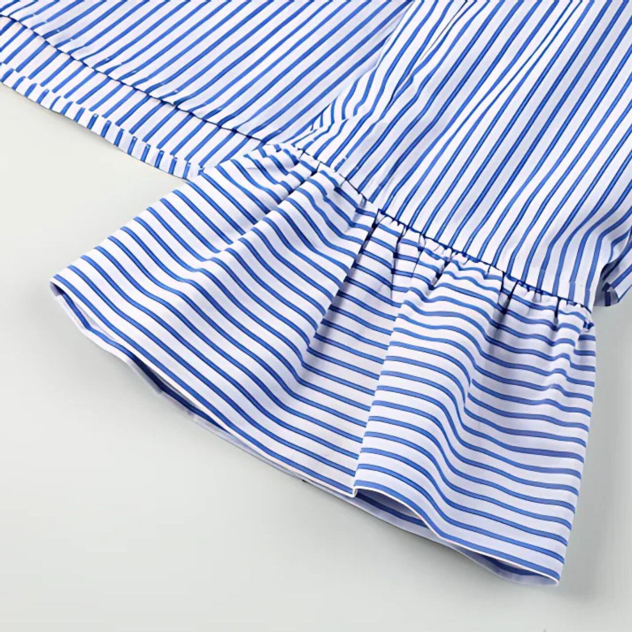 袖口のフリルデザインが、さりげない可愛らしさをプラス。