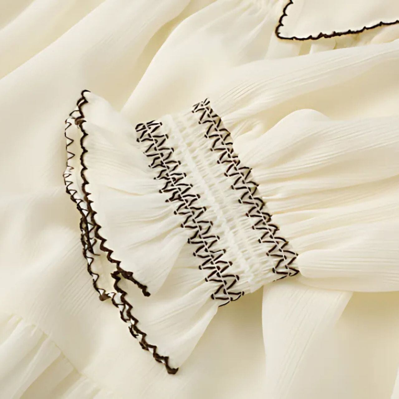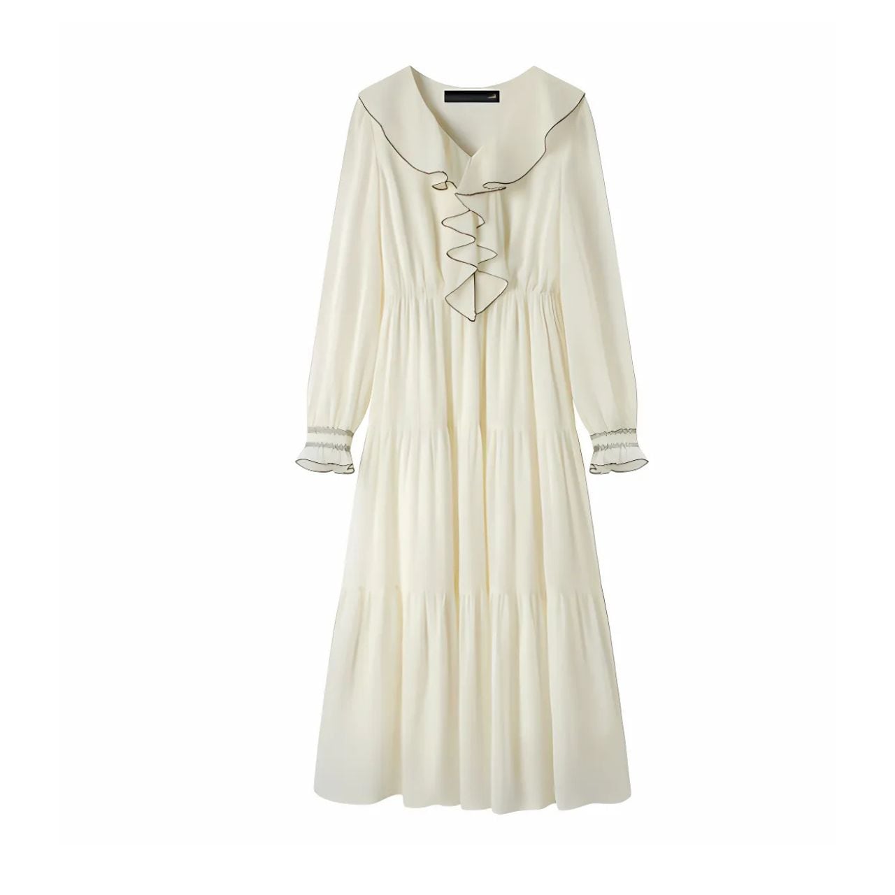 軽やかに広がるティアードシルエットが、歩くたびに柔らかな動きを生み出し、どこか懐かしくも凛とした存在感を放ちます。