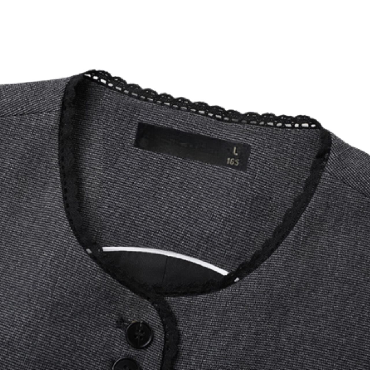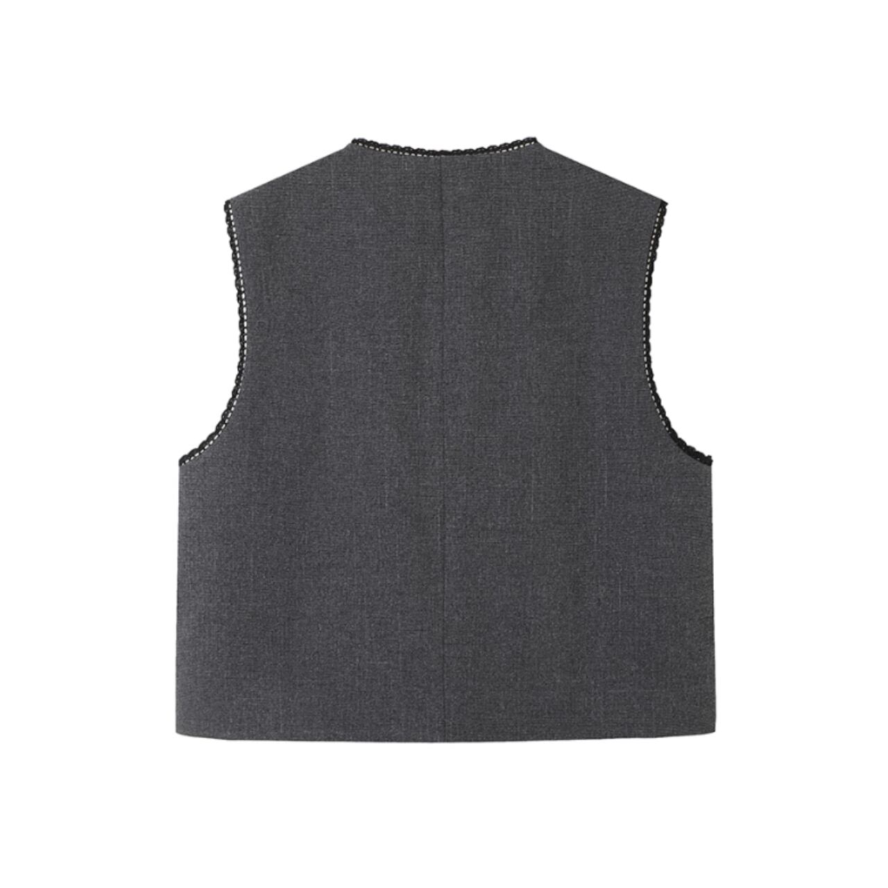 クラシカルなグレーに、繊細なレーストリムを効かせたベスト。