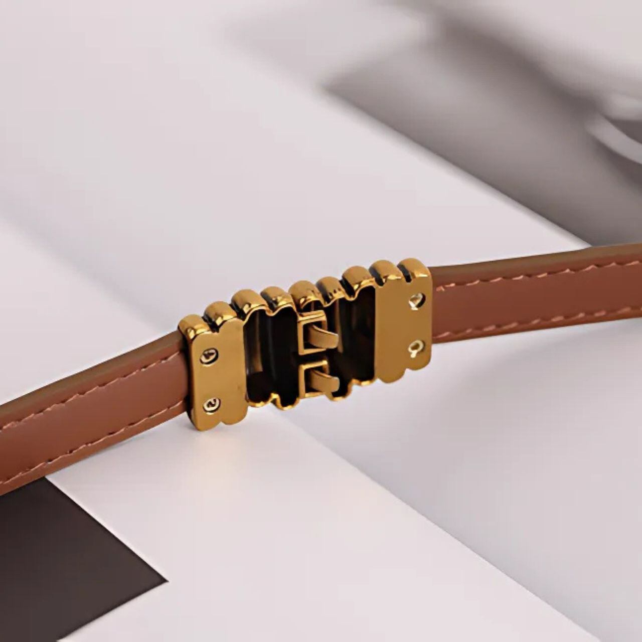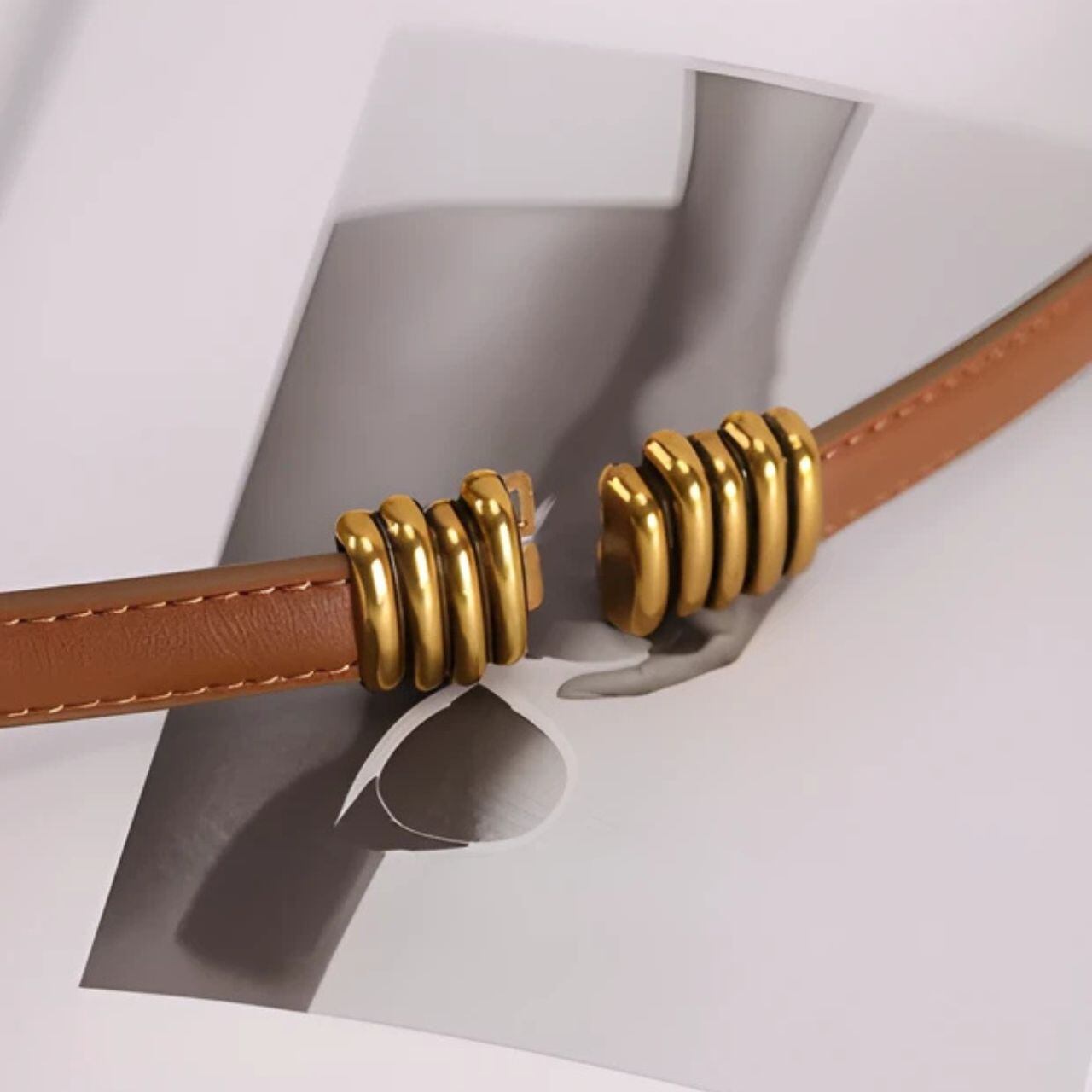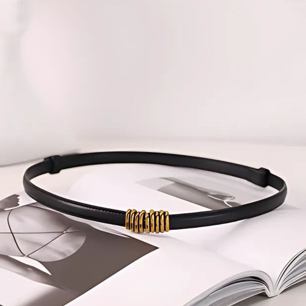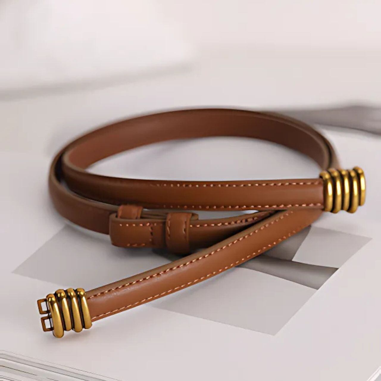 ゴールドリングが静かに主張する、細身のスリムベルト。