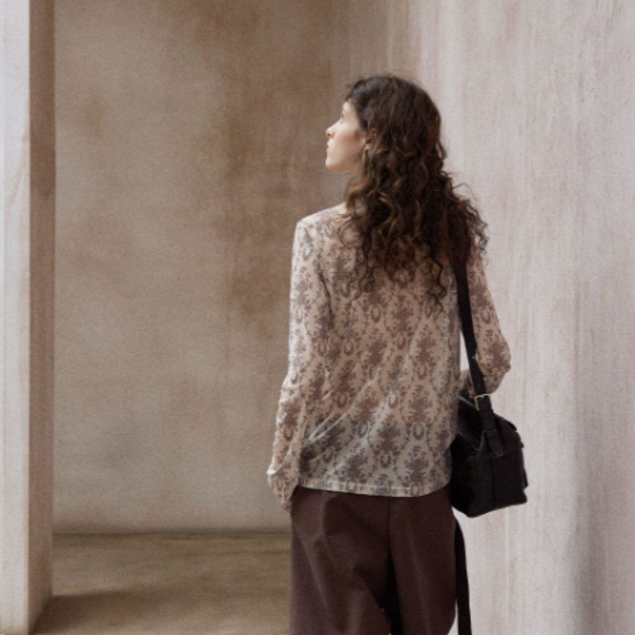 【商品詳細】 やわらかな光に浮かぶ、繊細なダマスク柄。 どこかノスタルジックでありながら、今の気分に寄り添う一枚。 伸びのある生地とすっきりしたモックネック、さりげないメロウ仕上げで上品に。 今はキャミを重ねて一枚で、季節が進んだらニットやワンピースのインに——襟元と袖口から柄を覗かせて。 ボリュームのあるプリーツ/バルーンスカートとも、マニッシュなトラウザーとも好相性。 アイボリーとオリーブグリーン、二つのニュアンスが装いに静かな表情を添えます。 一枚で、季節の移ろいに優しく寄り添う存在感を。 【サイズ】 S 肩幅:35cm 胸囲:86cm 着丈:67cm 袖丈:65cm M 肩幅:36cm 胸囲:90cm 着丈:69cm 袖丈:66cm ※採寸方法により1~3cmの誤差がある場合がございます。 【カラー】 アイボリー オリーブグリーン 【素材】 ポリエステル:95.7% ポリウレタン:4.3% 【お届けについて】 こちらの商品は海外店舗より直接発送となる為、ご入金から1週間〜3週間前後で発送致します。 ◼️注意事項 ・タイミングによっては 商品在庫切れにより注文キャンセルとさせていただく恐れもございますので、予めご了承くださいませ。 ・こちらは輸入品となります。 日本製とは検品基準が異なる為、新品未使用品でもごくわずかな汚れや傷がある場合もございます。 ・商品の色味は、お手持ちのスマートフォンの画面によって実物と若干異なる場合がございます。 ・イメージ違いやサイズ等、お客様都合による交換、返品、キャンセルは対応出来かねます。 ———————————— ご購入前にこちらをお読みください →https://favorimarche.base.shop/about ————————————