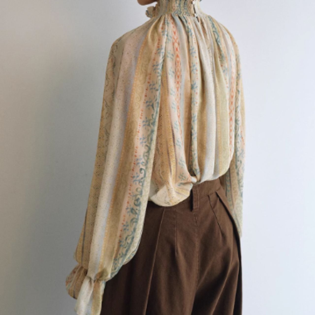 蚤の市で見つけたヴィンテージのスカーフのように、淡く霞むアラベスクがそっと揺れる一枚。
