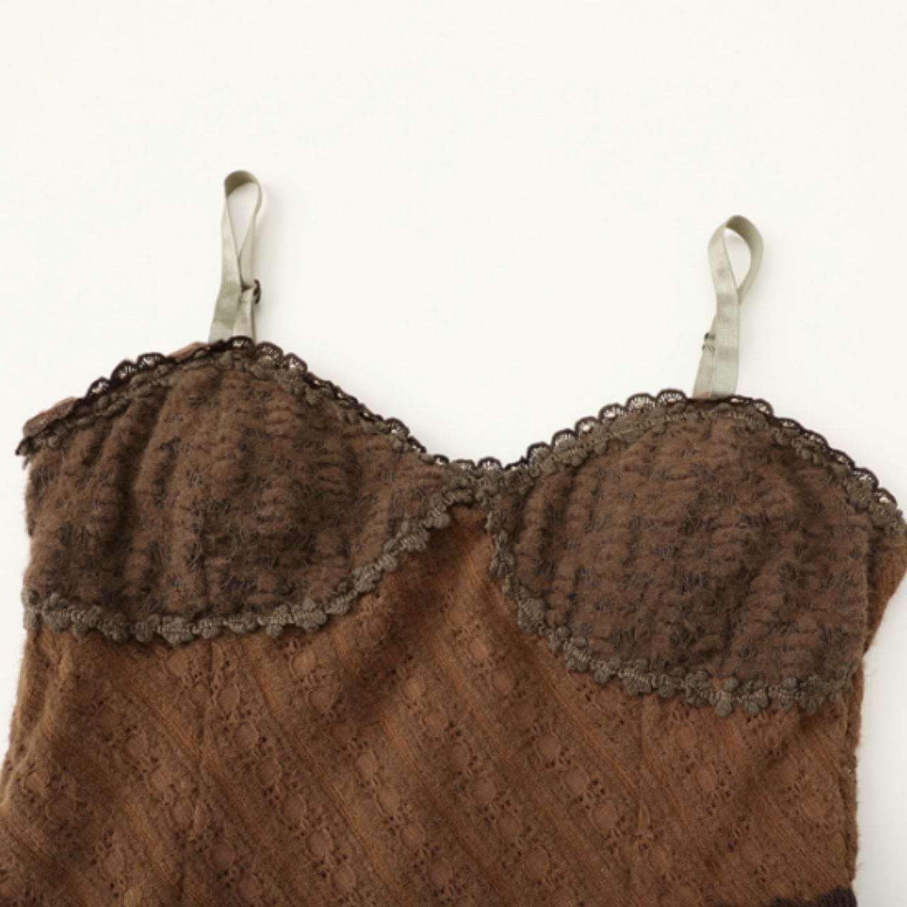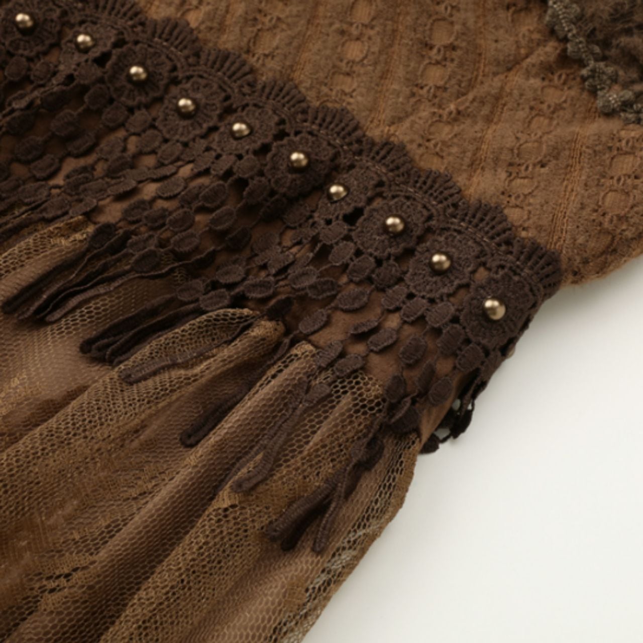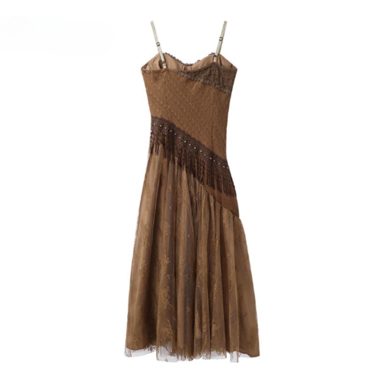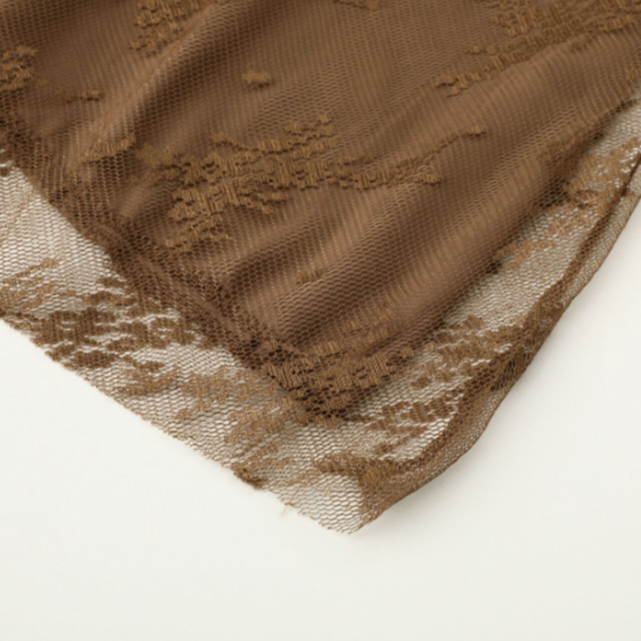 繊細なレースとチュールを重ねた、ヘーゼルを思わせるブラウンのスリップドレス。