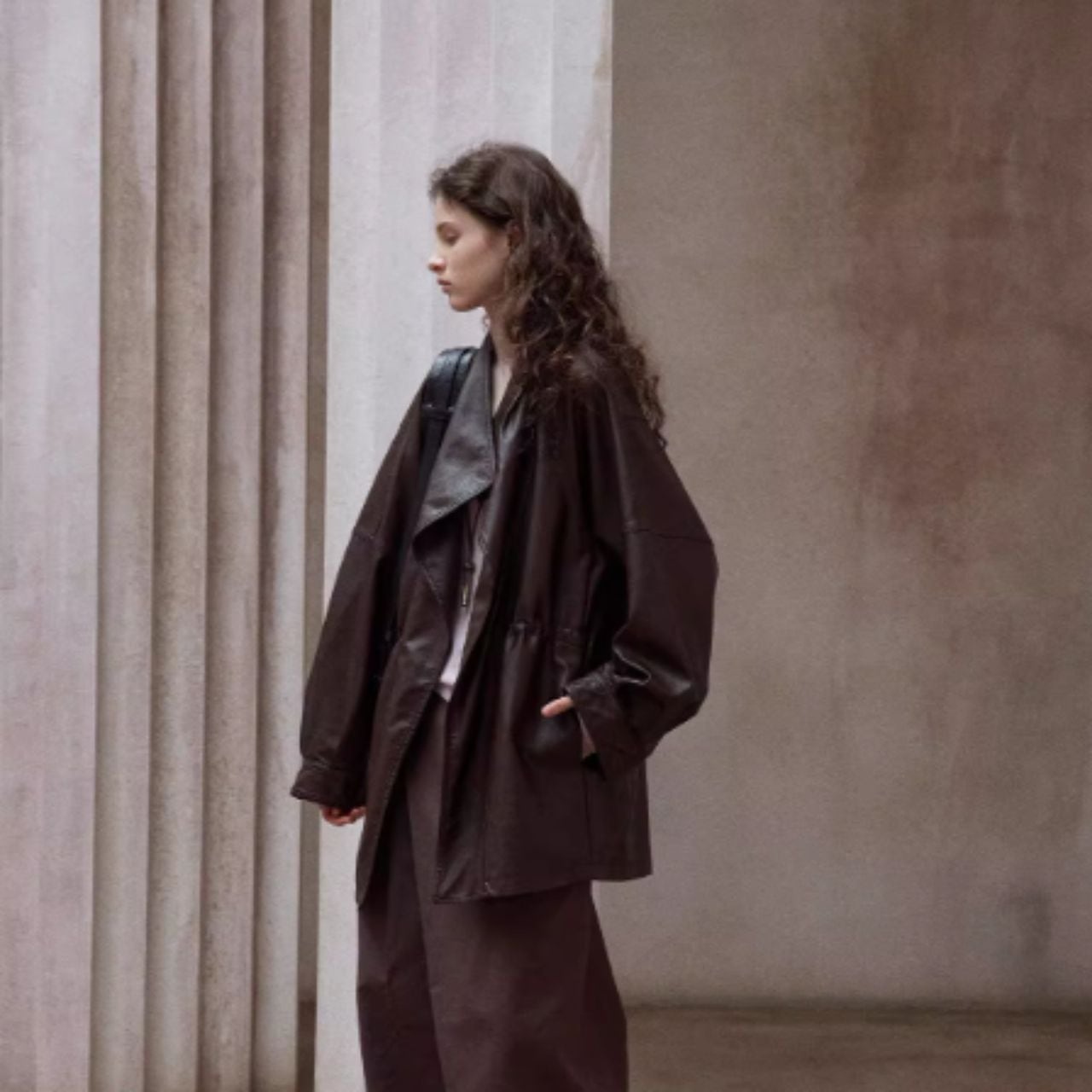 【商品詳細】 柔らかなドレープラペルに、ミリタリー由来のドローストリングをひそませたフィールドコート。 レザーライクな艶とオーバーサイズの袖が、歩くたび陰影をつくります。 前を開けばマントのように流れ、ウエストを絞れば端正なシルエットへ。 レースのブラウスやヒールに重ねて“甘×辛”を引き寄せても、ミリタリーパンツやブーツで無骨に寄せても、どちらも絵になります。 両脇ポケット付き。軽やかな着心地で、装いの主役にも、羽織るだけの決め手にも。 【サイズ】 S 肩幅:56cm 胸囲:138cm 着丈:81cm M 肩幅:58cm 胸囲:144cm 着丈:83cm ※採寸方法により1~3cmの誤差がある場合がございます。 【カラー】 ブラウン ブラック 【素材】 表地:レーヨン ポリウレタン 裏地:ポリエステル 他 【お届けについて】 こちらの商品は海外店舗より直接発送、先行販売となる為、ご入金から2週間〜順次発送致します。 ◼️注意事項 ・タイミングによっては 商品在庫切れにより注文キャンセルとさせていただく恐れもございますので、予めご了承くださいませ。 ・こちらは輸入品となります。 日本製とは検品基準が異なる為、新品未使用品でもごくわずかな汚れや傷がある場合もございます。 ・商品の色味は、お手持ちのスマートフォンの画面によって実物と若干異なる場合がございます。 ・イメージ違いやサイズ等、お客様都合による交換、返品、キャンセルは対応出来かねます。 ———————————— ご購入前にこちらをお読みください →https://favorimarche.base.shop/about ————————————