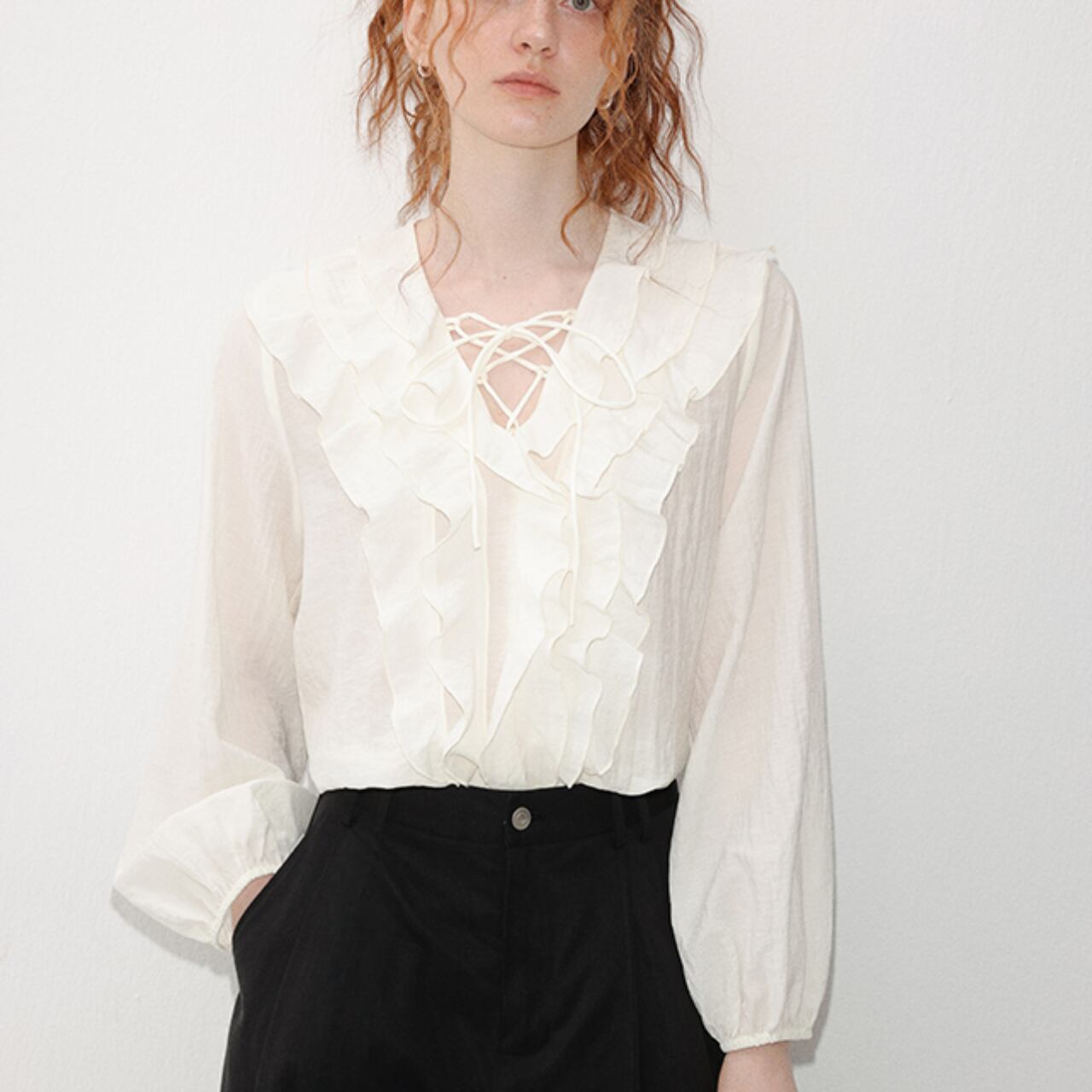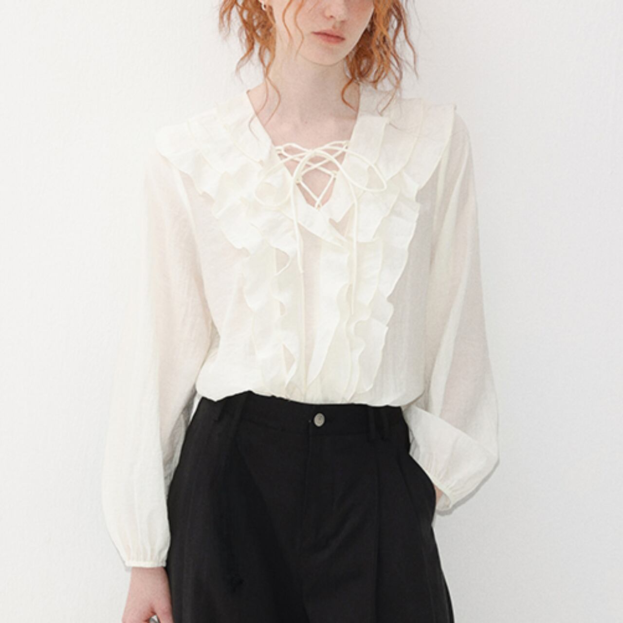 Volant Lace-Up Blouse F0497