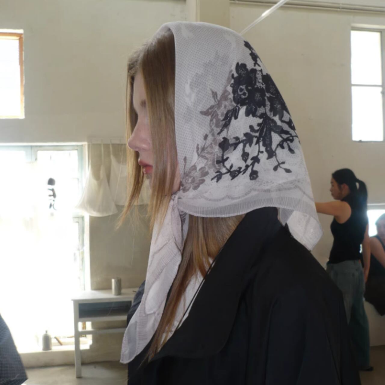 薄手で軽く、首元・頭・腰に巻いても重さを感じにくい素材感です。