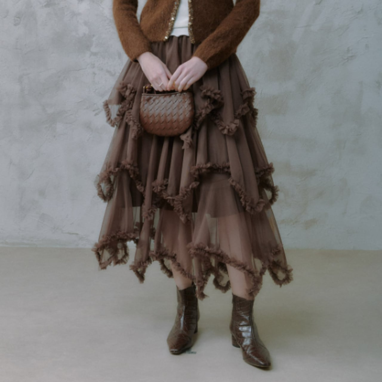 装いにほんの少し高揚感を添える、印象に残る一枚です。