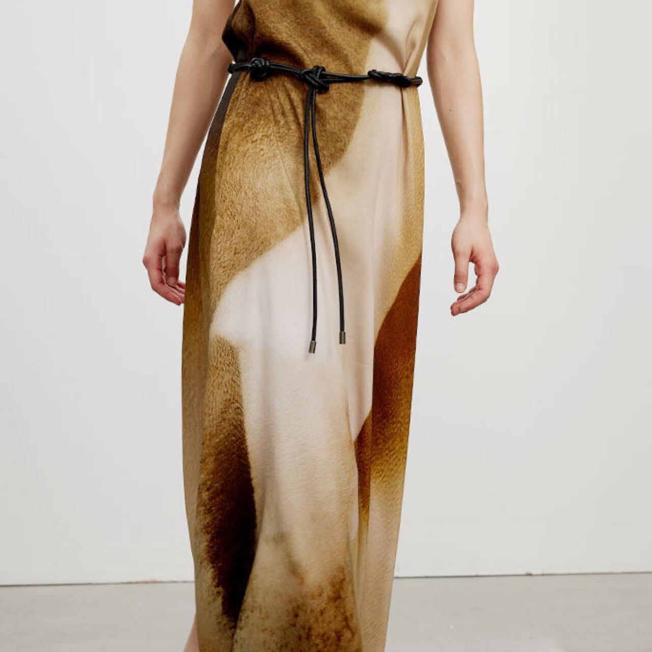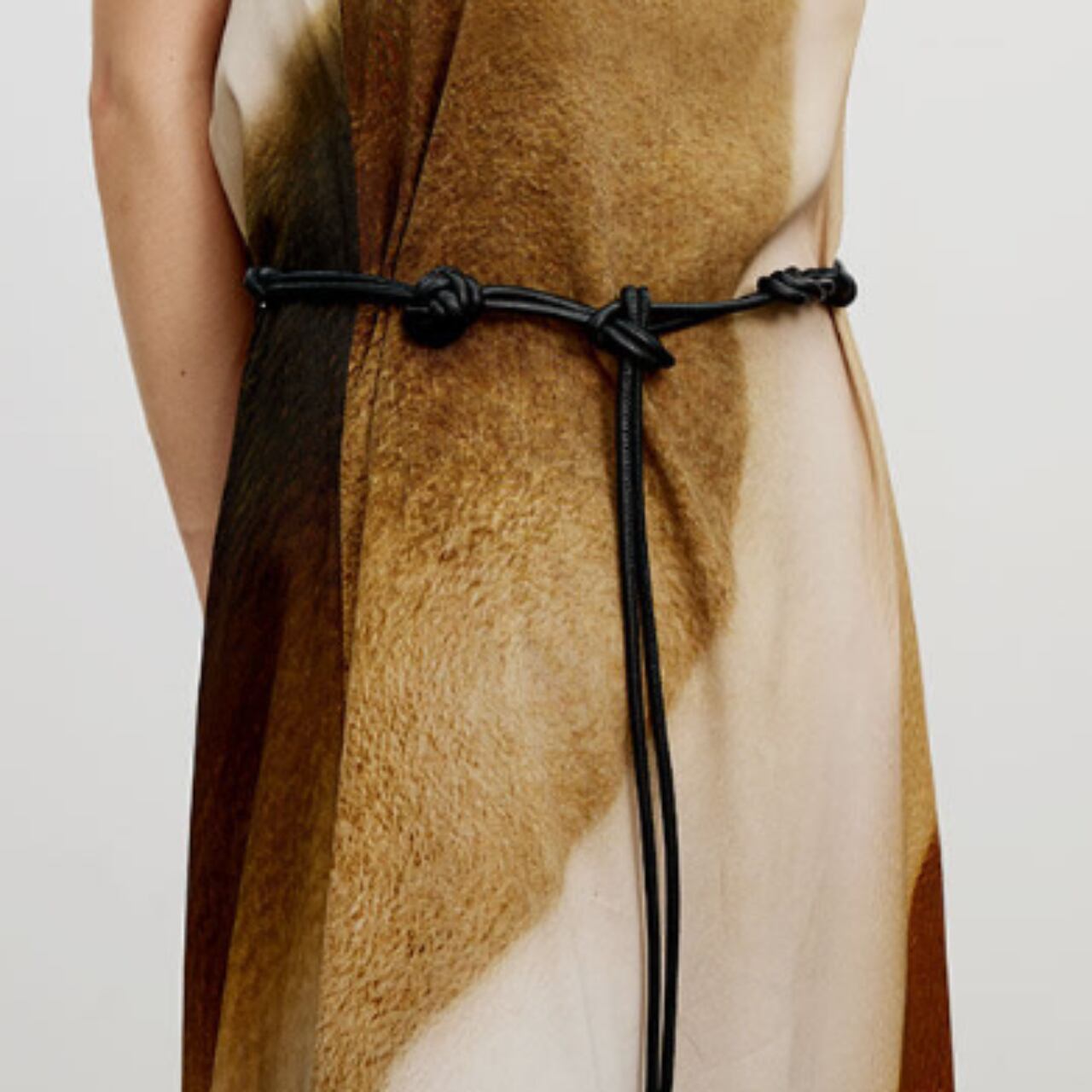 しっかりとした作りがフォルムを保ち、ワンピースやパンツ、ジャケットに添えるだけで全体の構成を整えます。
