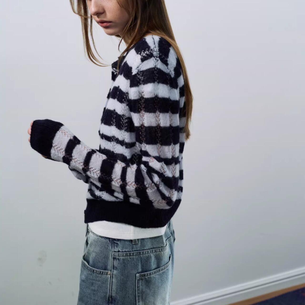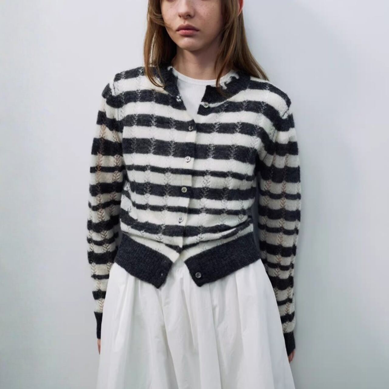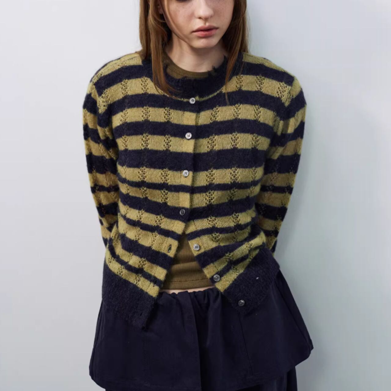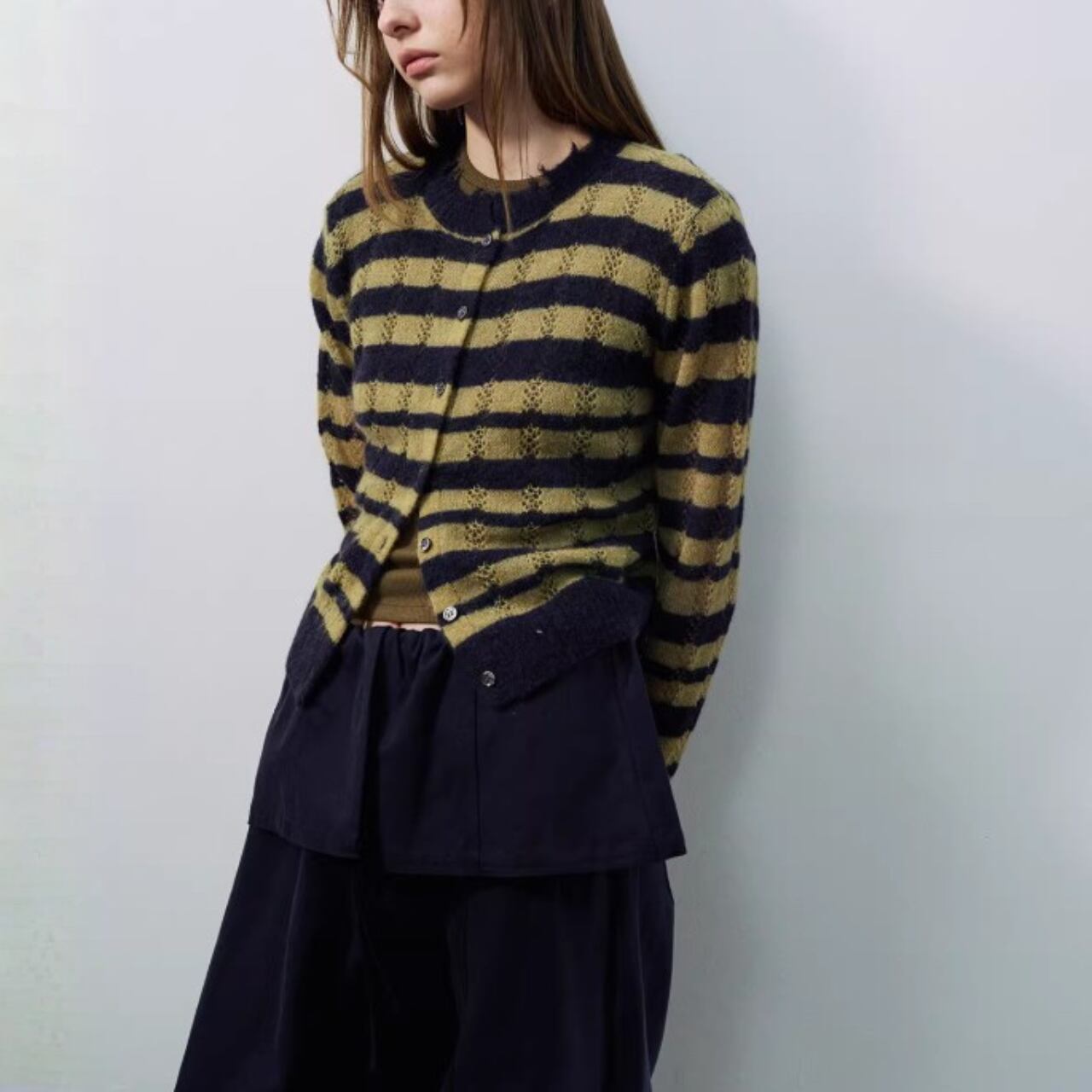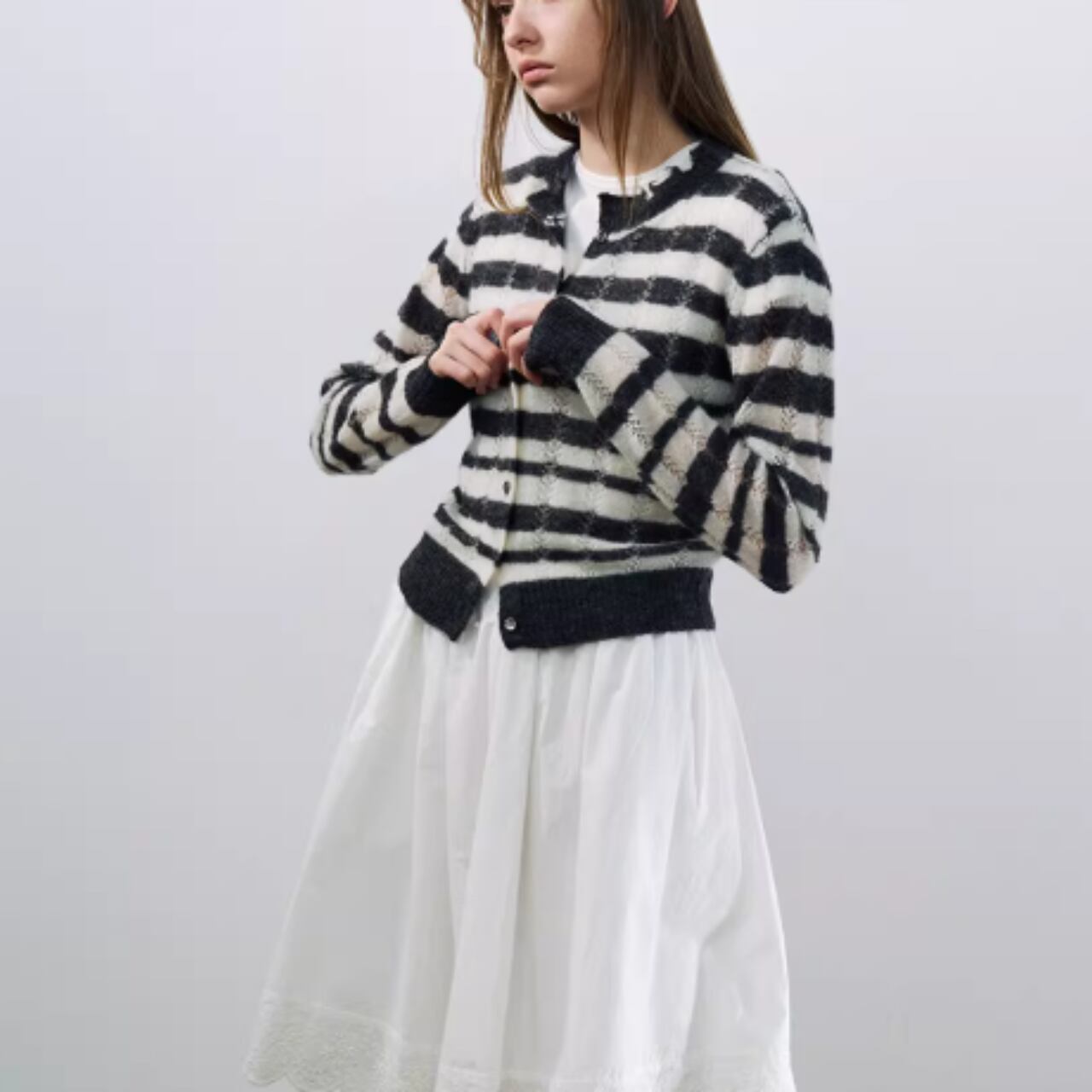 編み端を整えすぎないネックラインが、アクセントになっています。