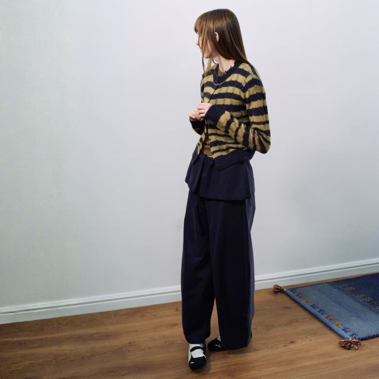 前を留めてトップスのように、軽く羽織ってもバランスが取りやすい丈感。