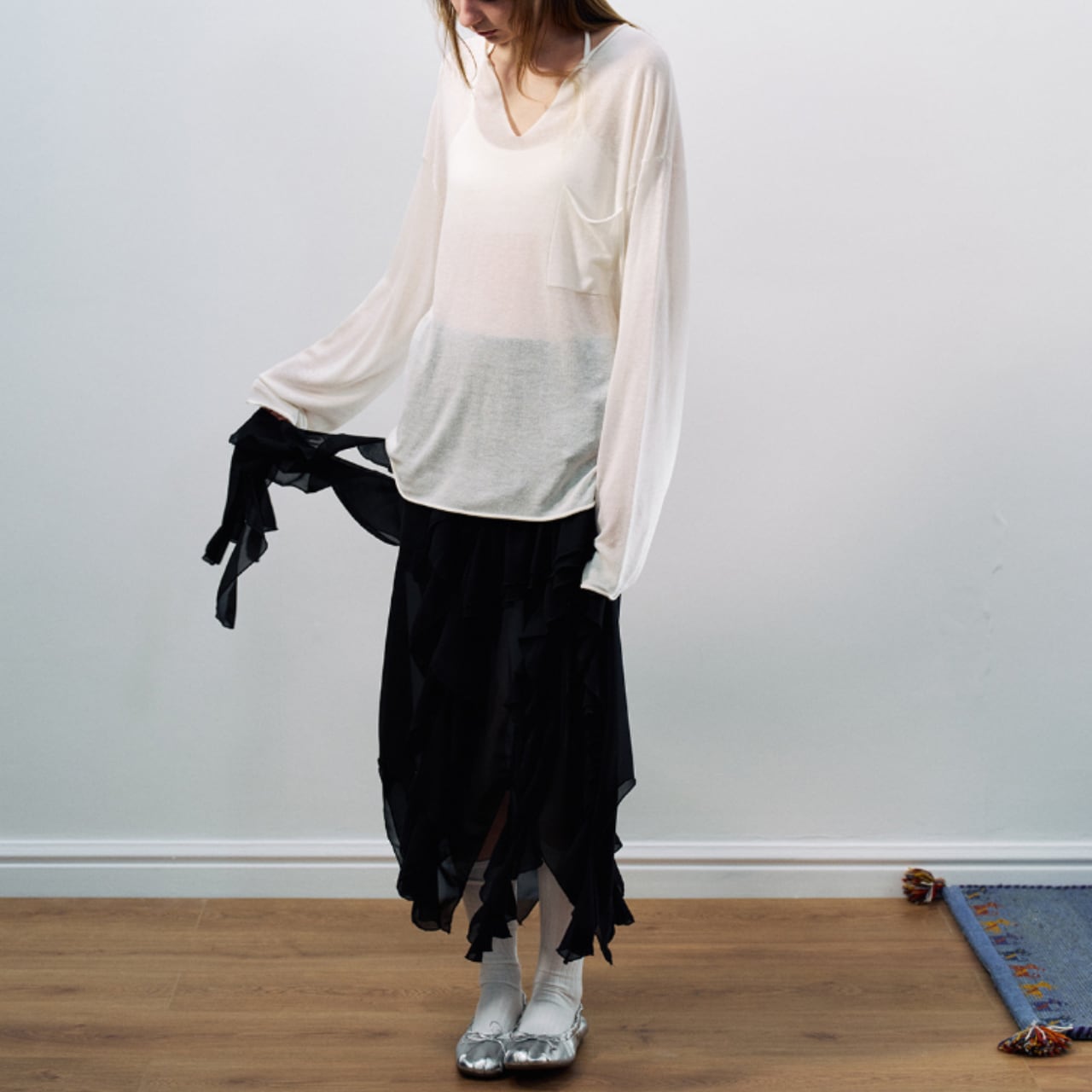 柔らかなシフォン素材は、空気を含むような軽さが魅力。