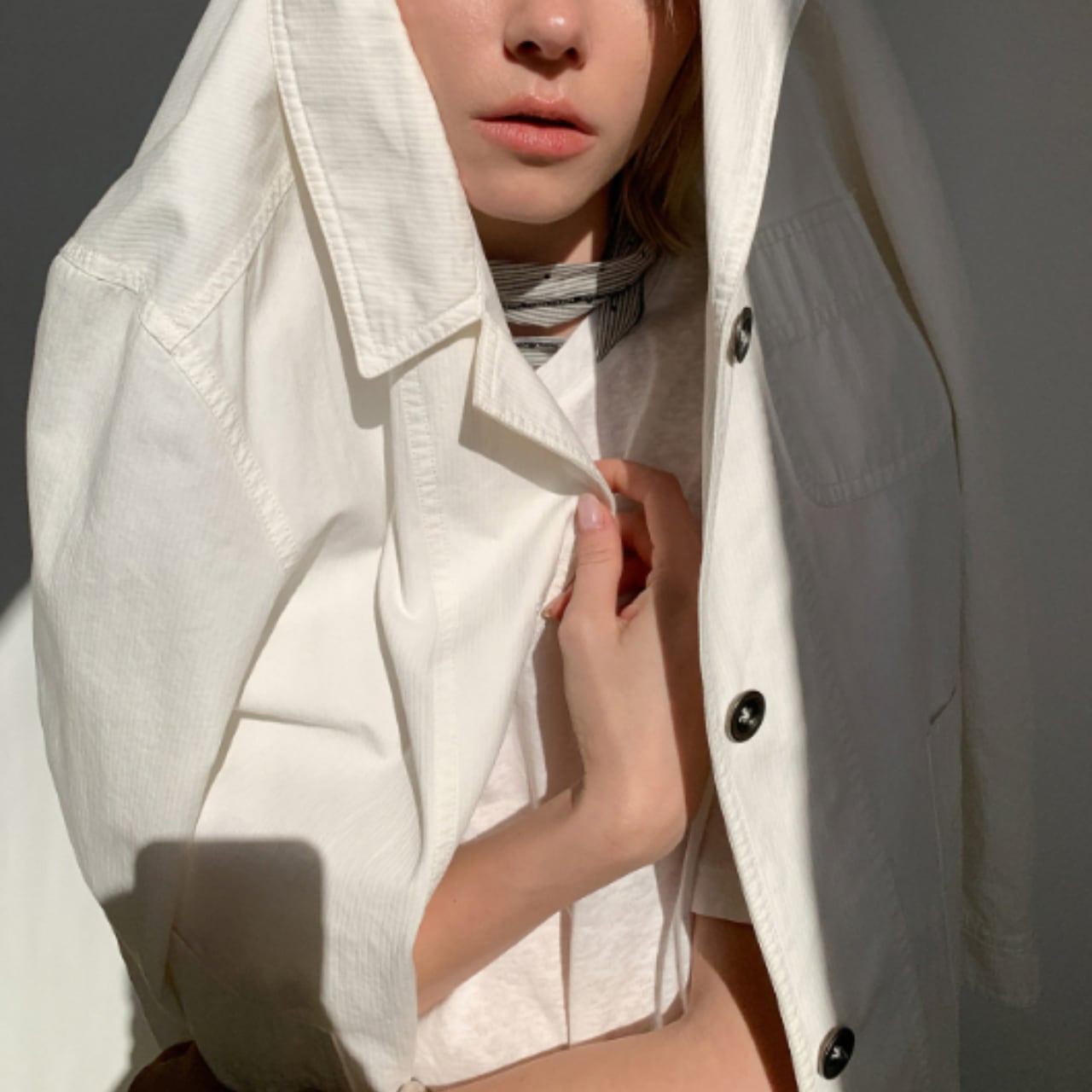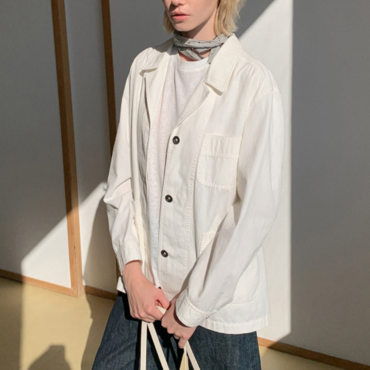 薄手のコットン100%で仕立てた一枚は、シャツのような軽さと、ジャケットらしい佇まいをあわせ持っています。