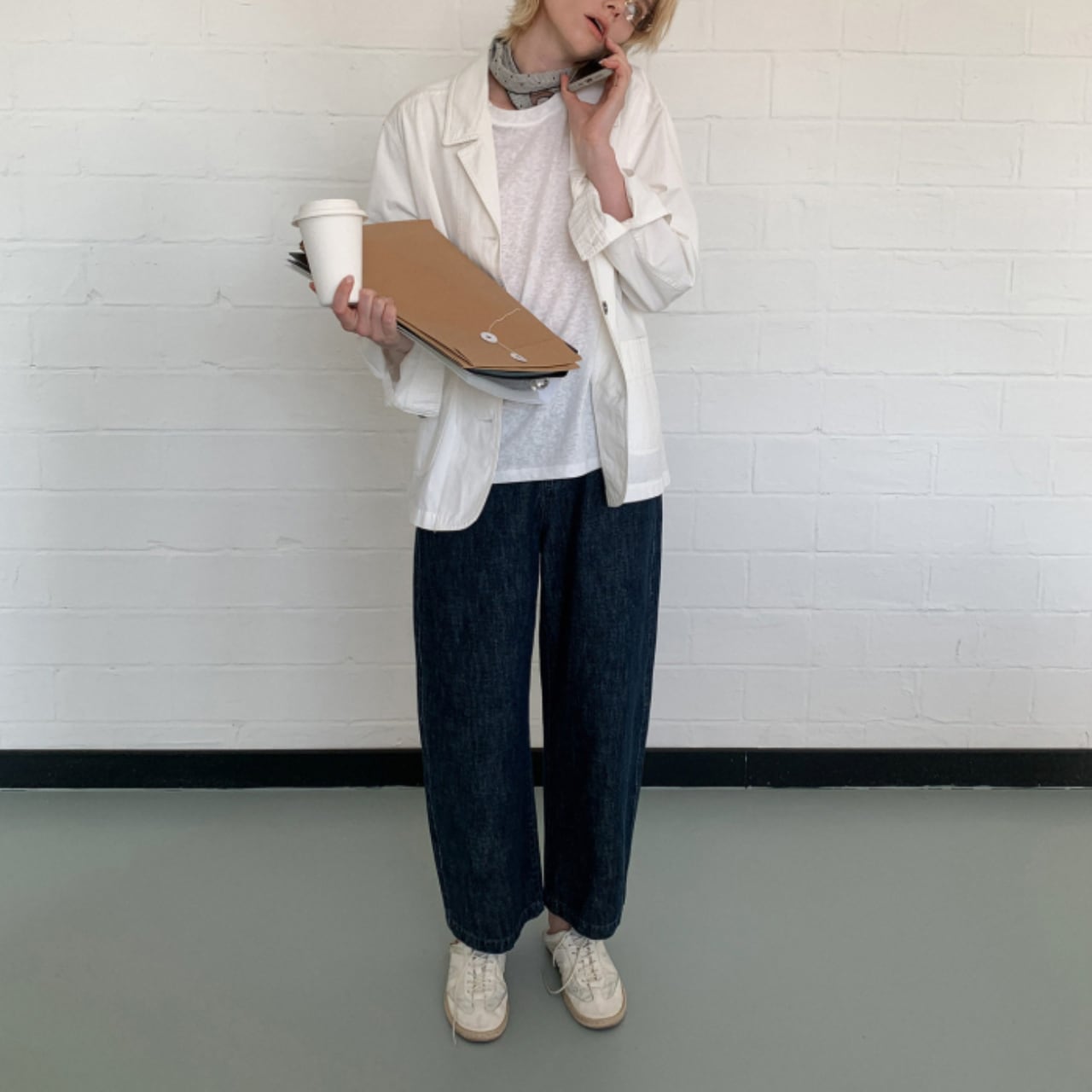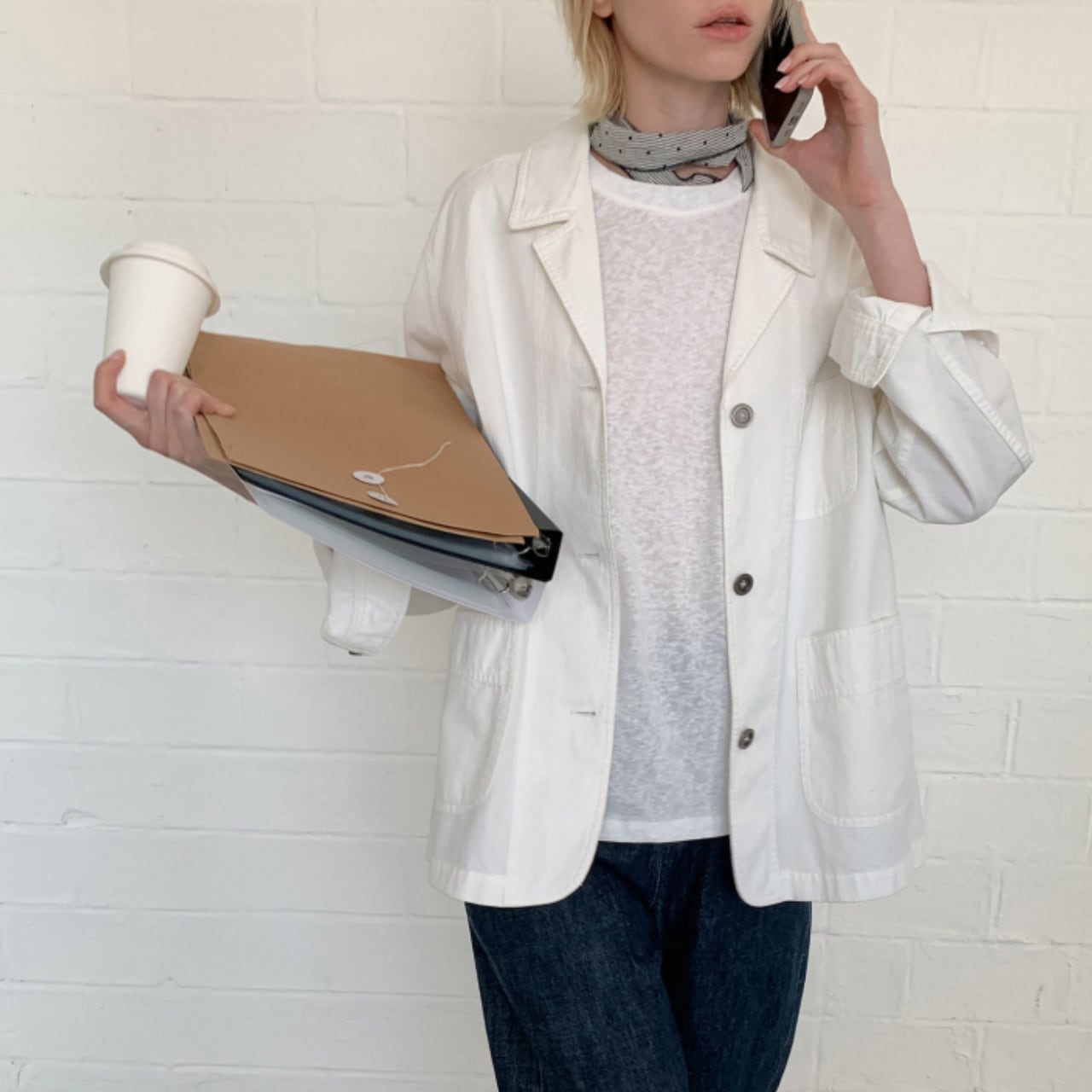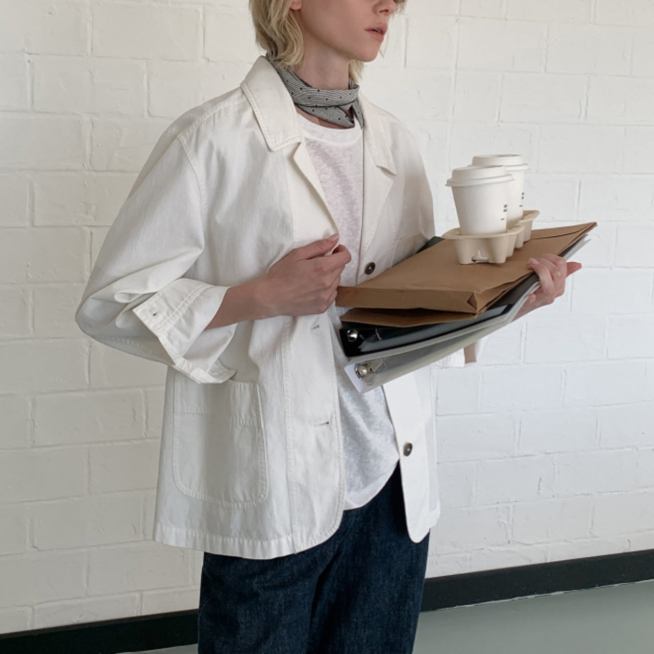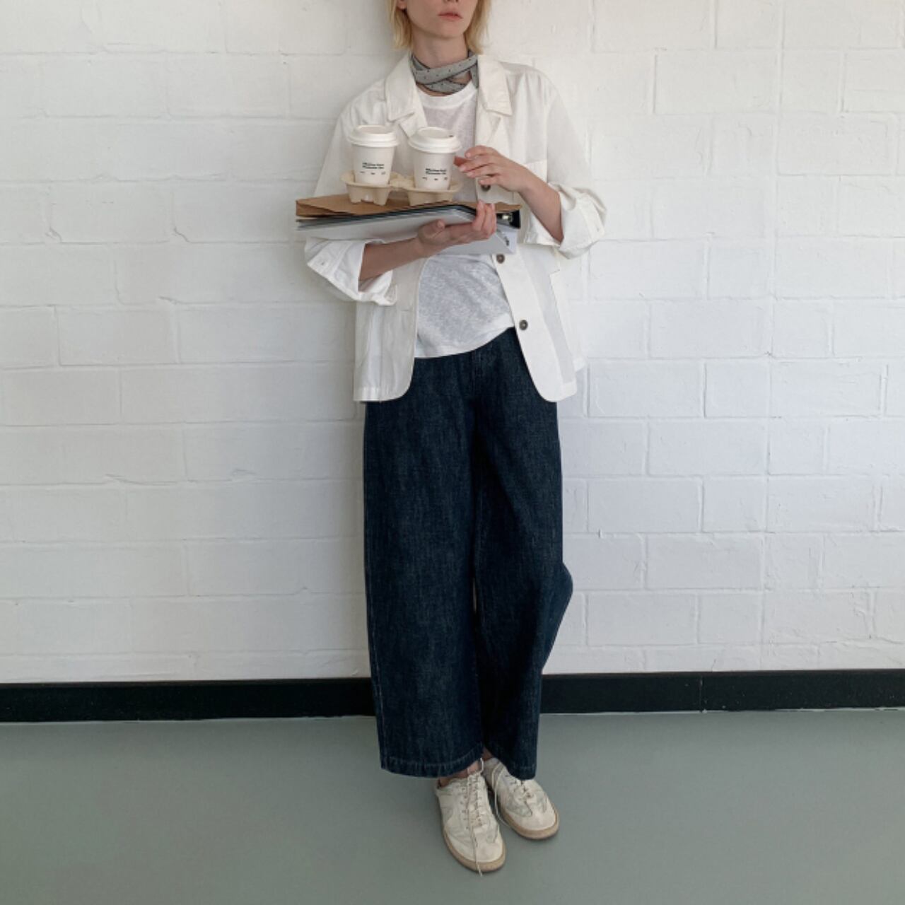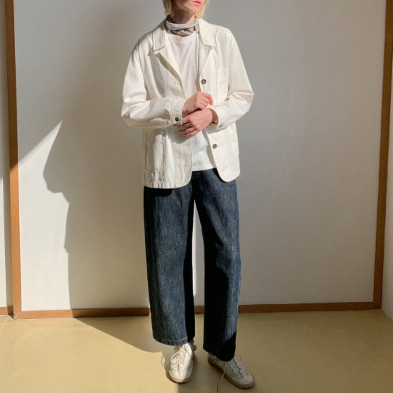 それでいて、クリーンなホワイトが全体を柔らかくまとめ、大人のカジュアルに自然と馴染みます。