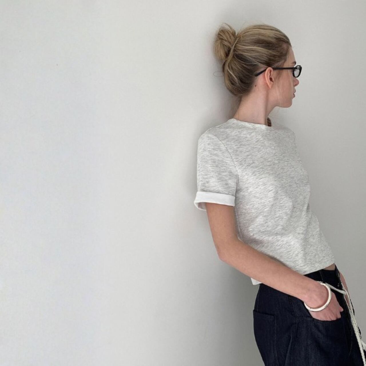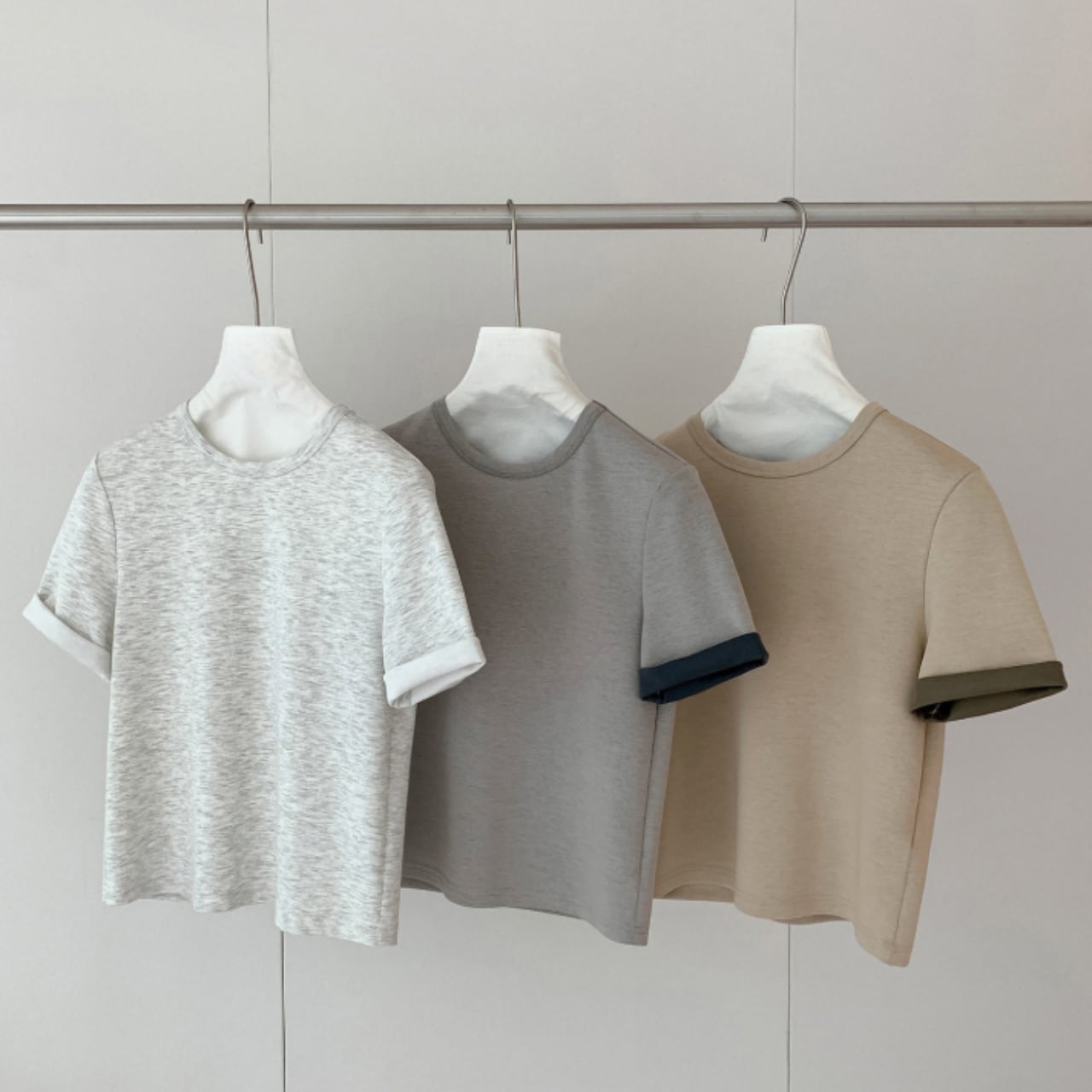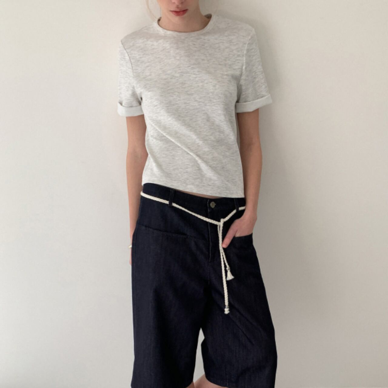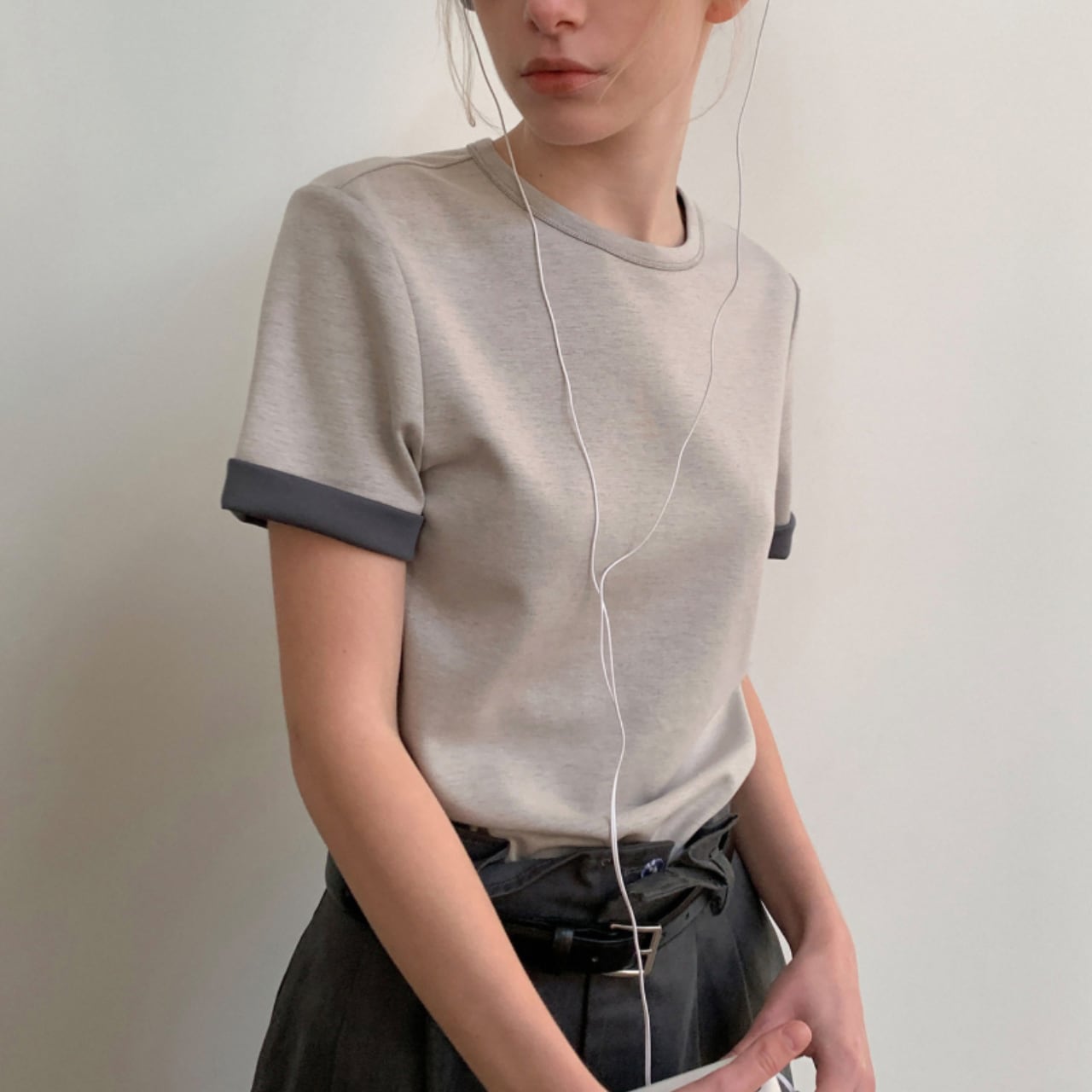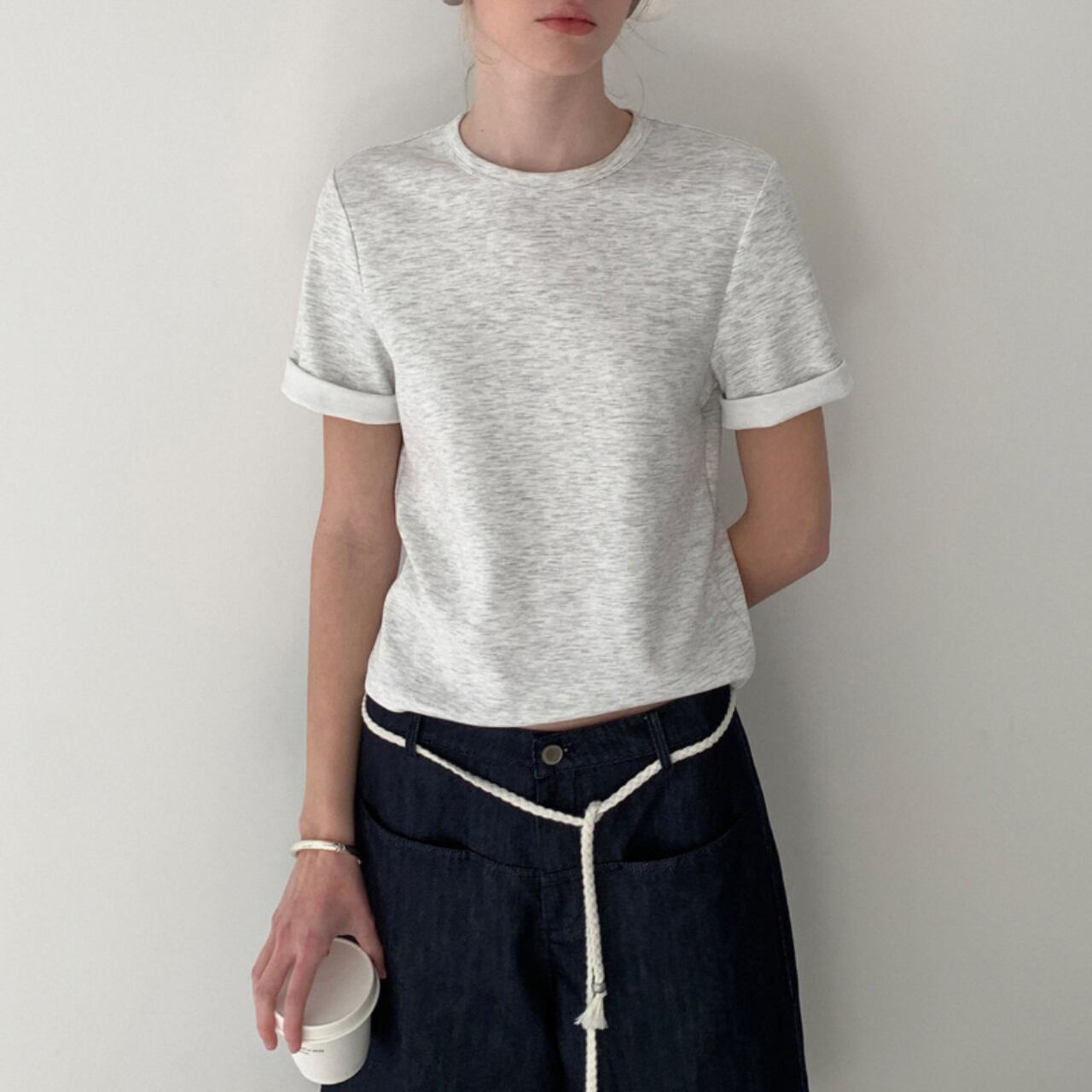 無駄のないシンプルなシルエットに、袖口のさりげない折り返しが軽やかなニュアンスを添えます。