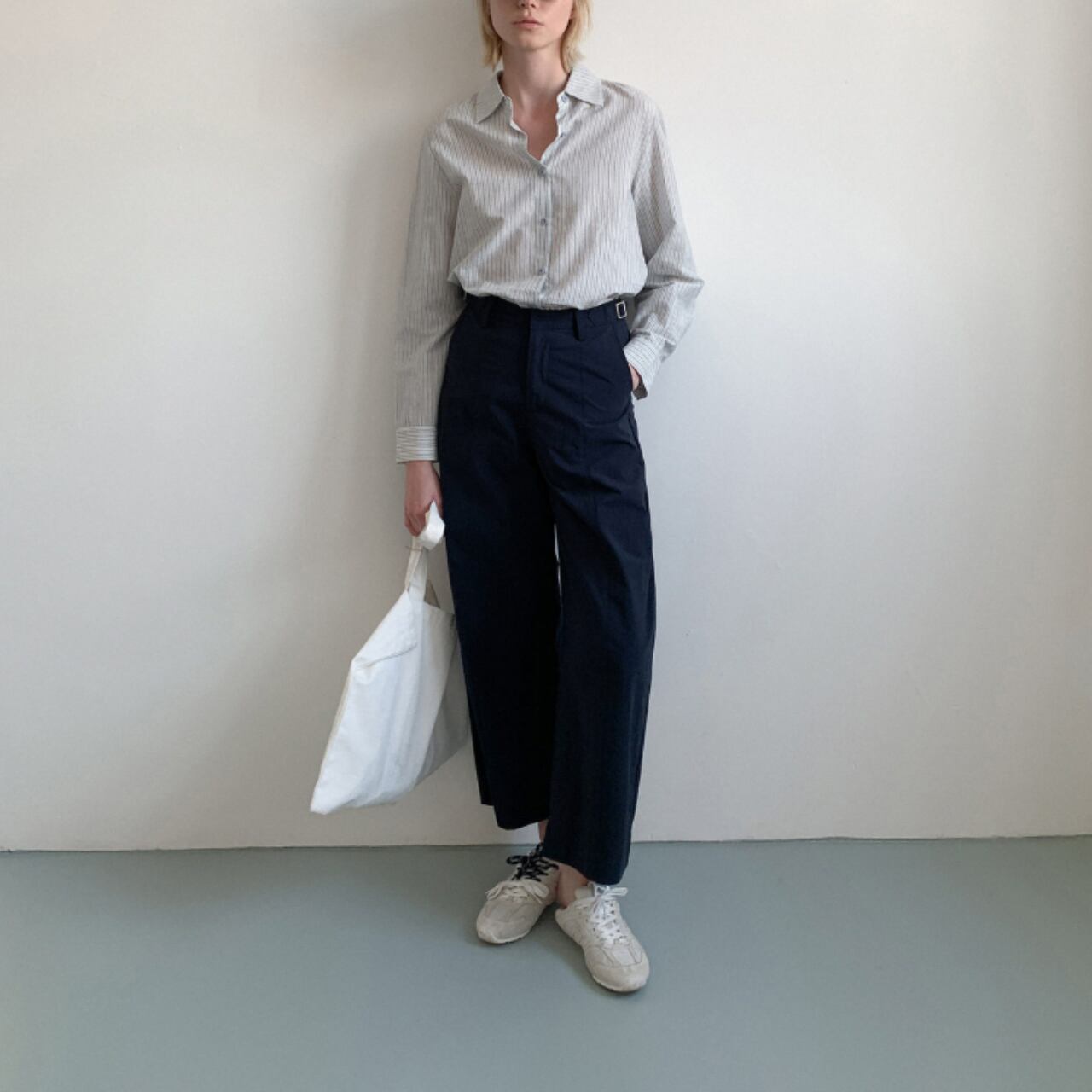 Tシャツやブラウスを合わせるだけで、肩の力を抜いた大人のバランスが完成します。