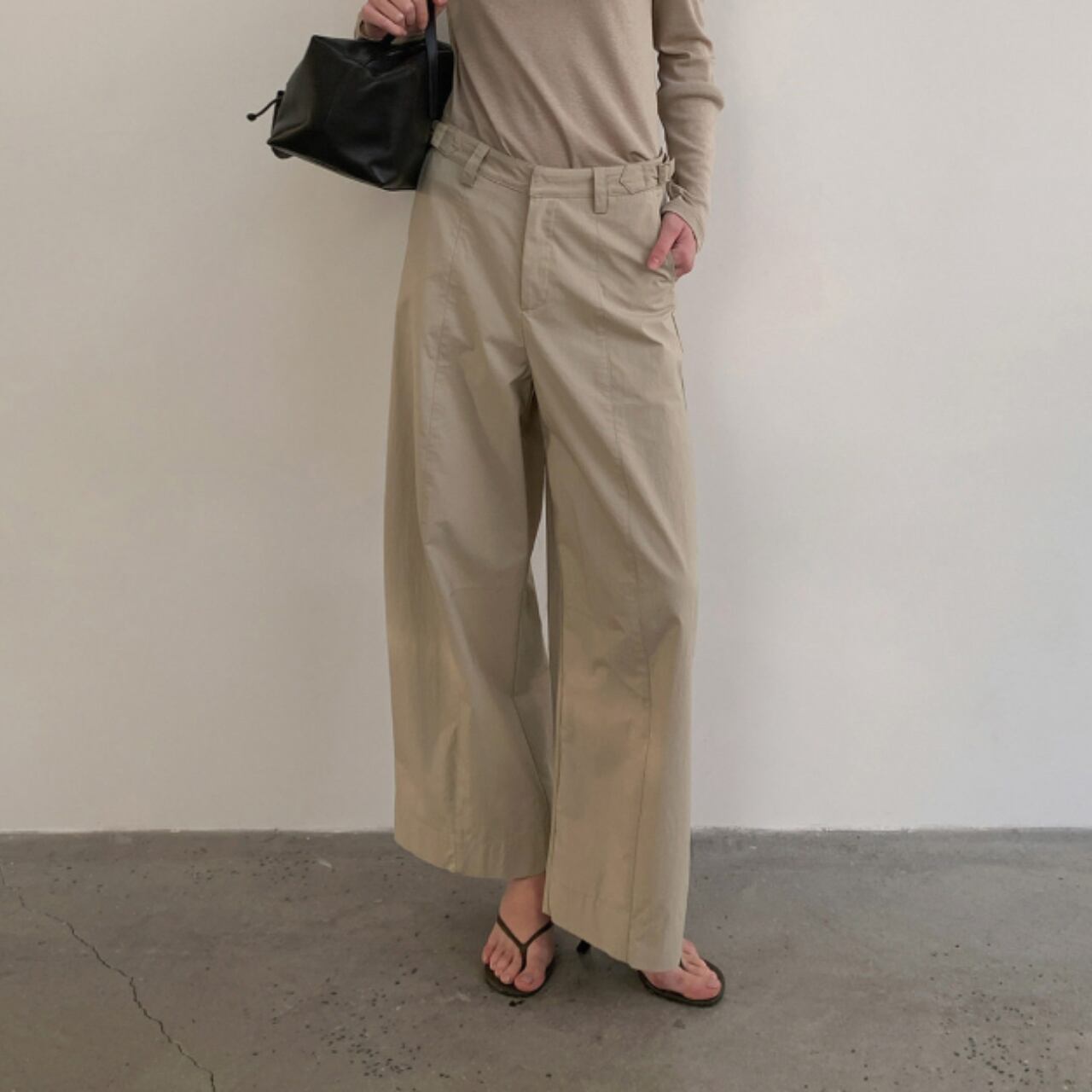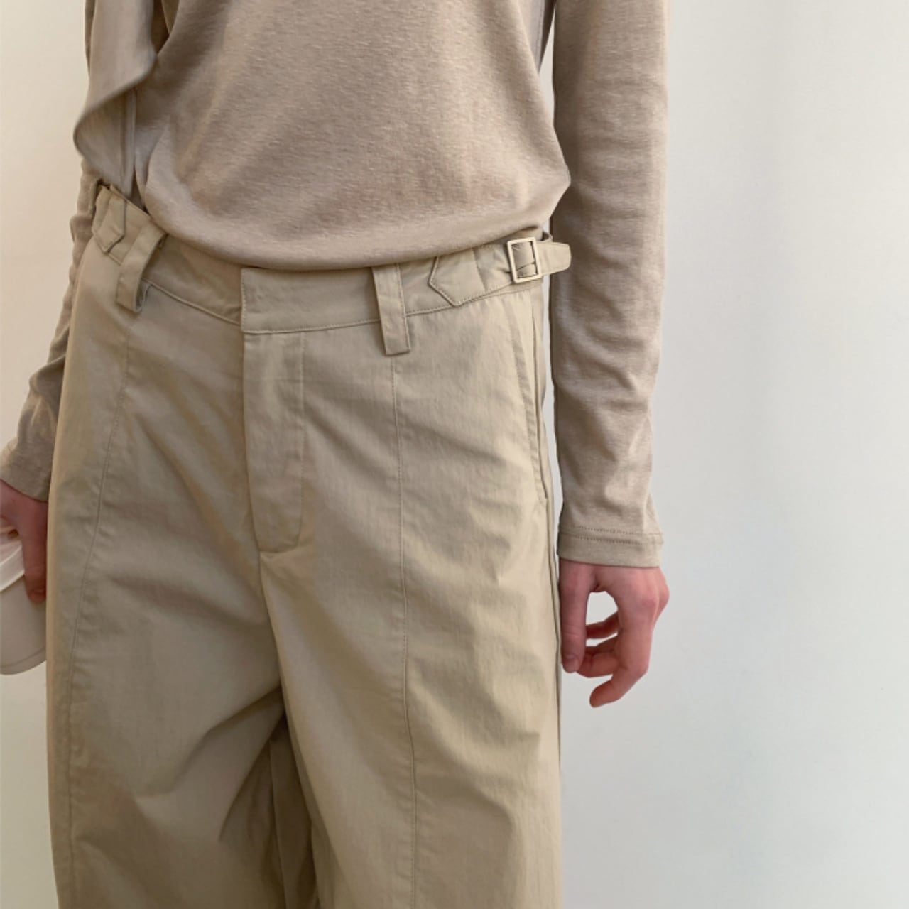 程よくゆとりのあるシルエットで動きやすく、日常のスタイルにも自然に馴染む一本。
