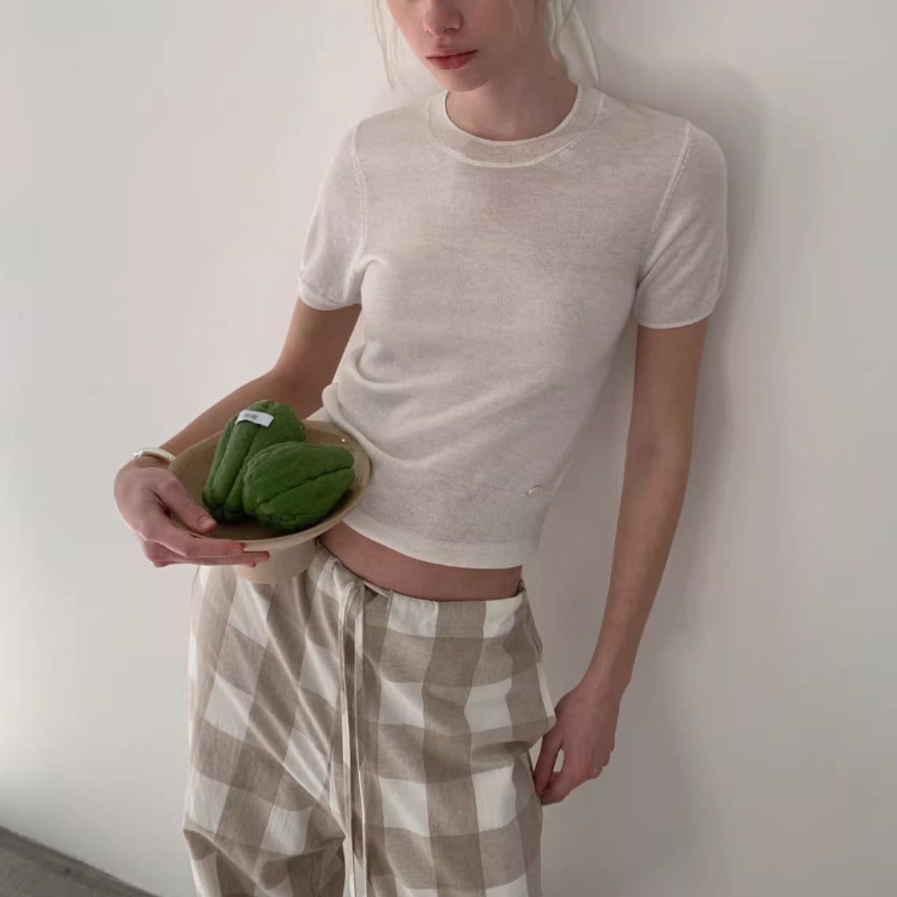 コンパクトな丈感で、ハイウエストのパンツやスカートとも好相性。
