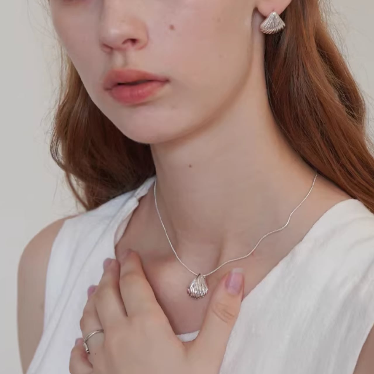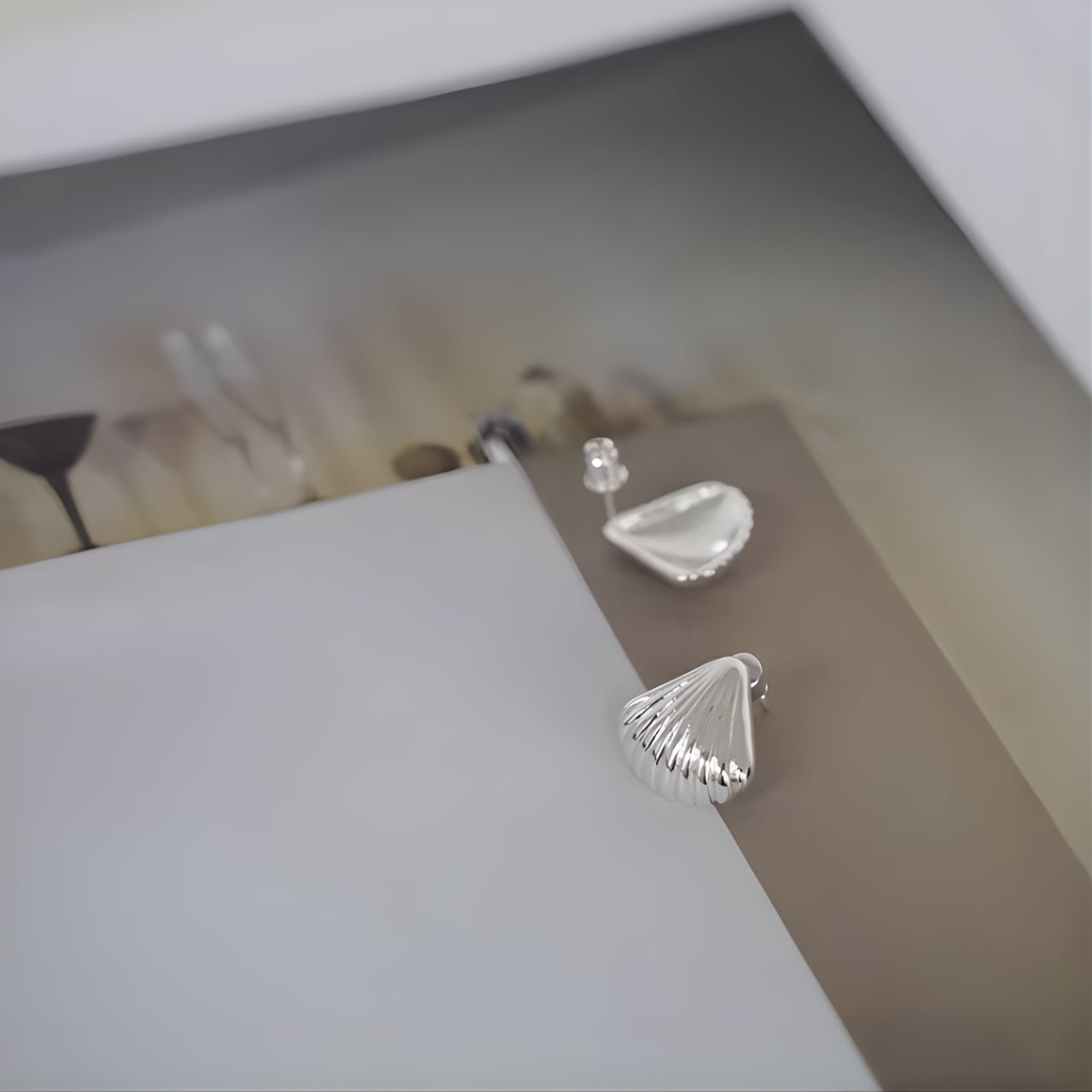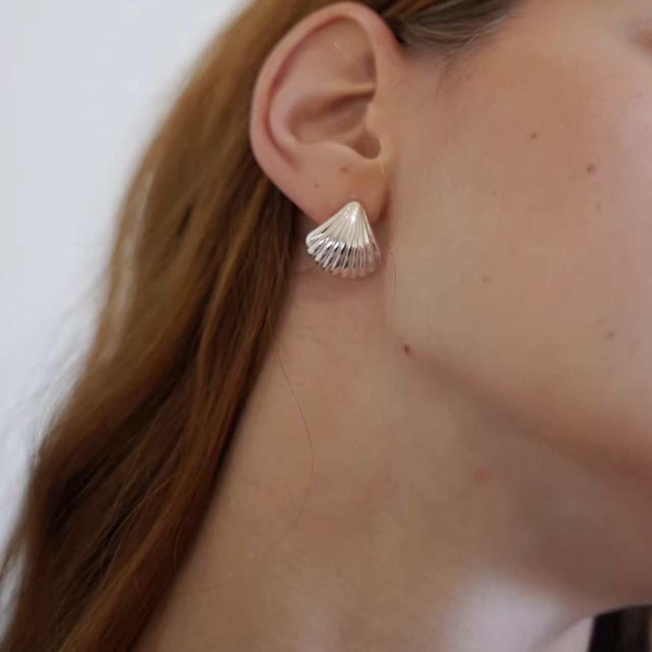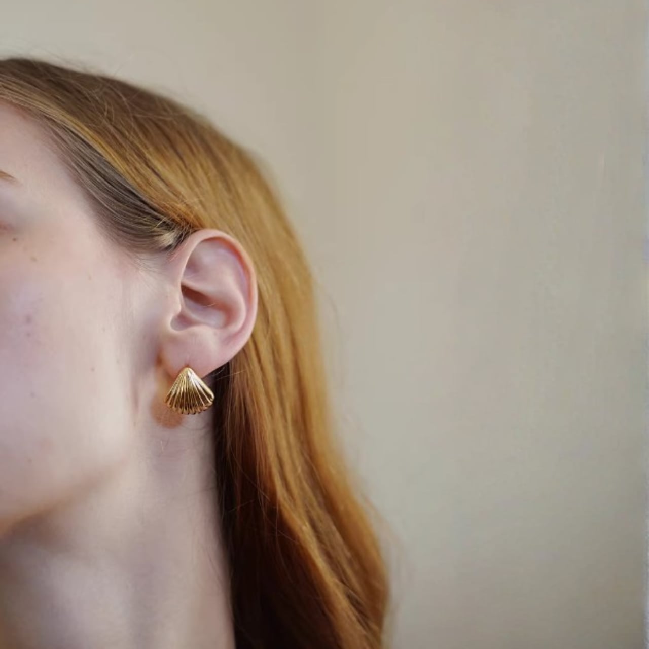 小さなシェルのかたちをそのまま活かした、シンプルなスタッドピアス。