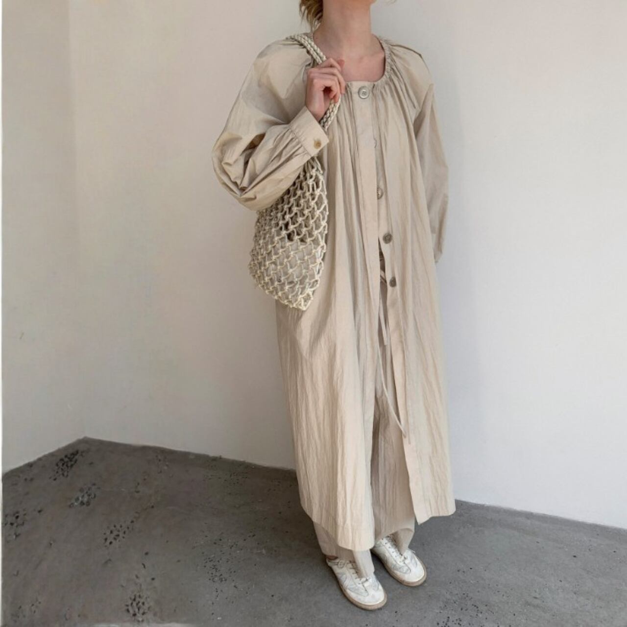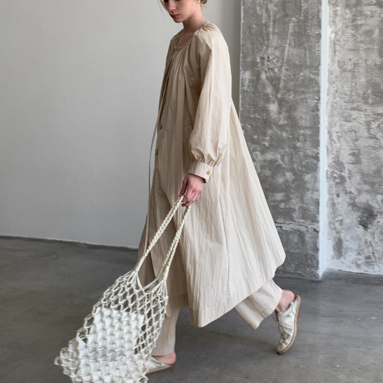 整えすぎなくても形が崩れない、力の抜けたロングブラウス。