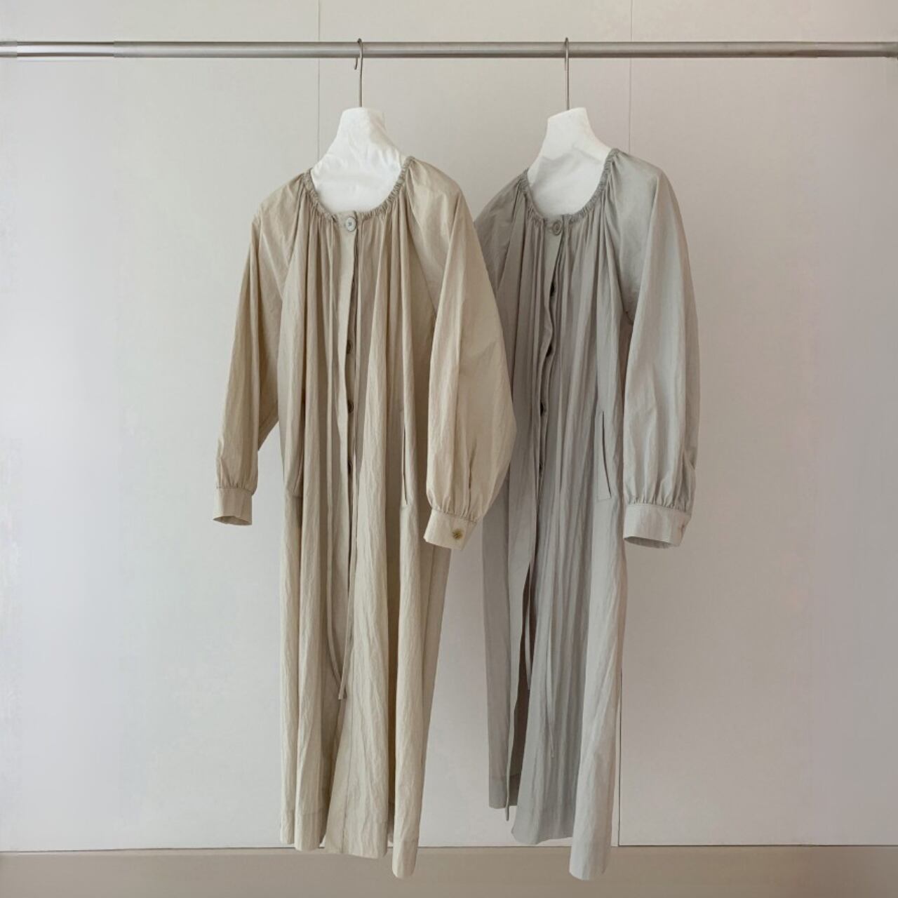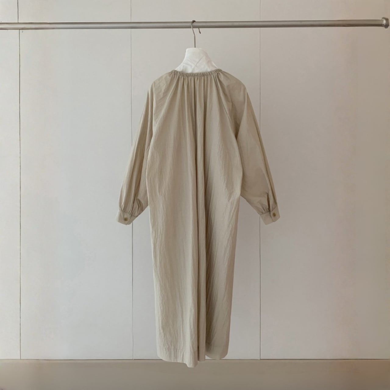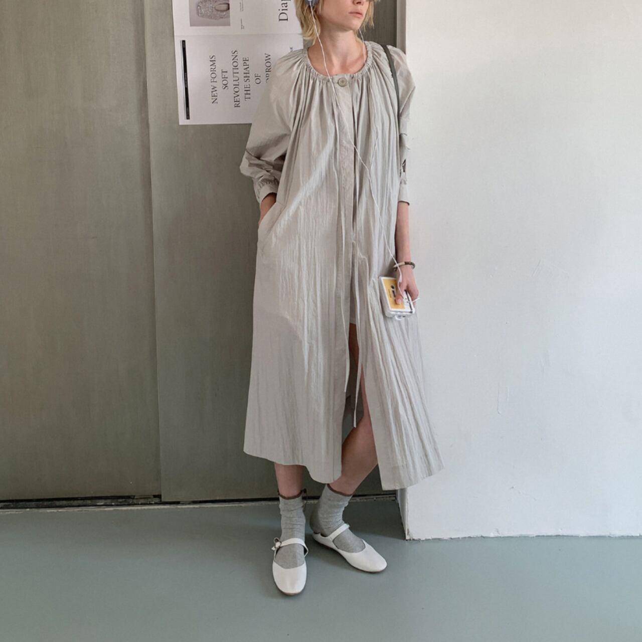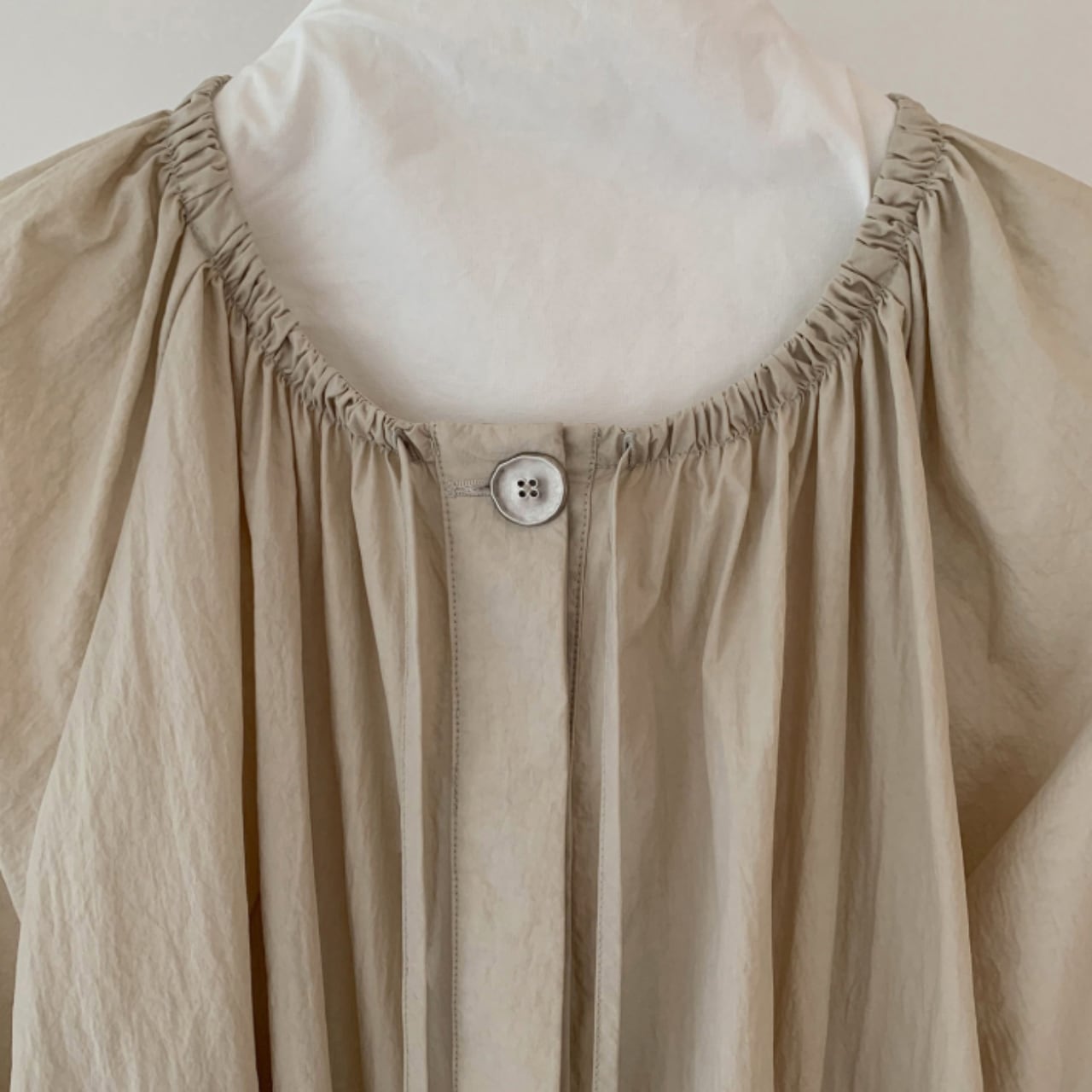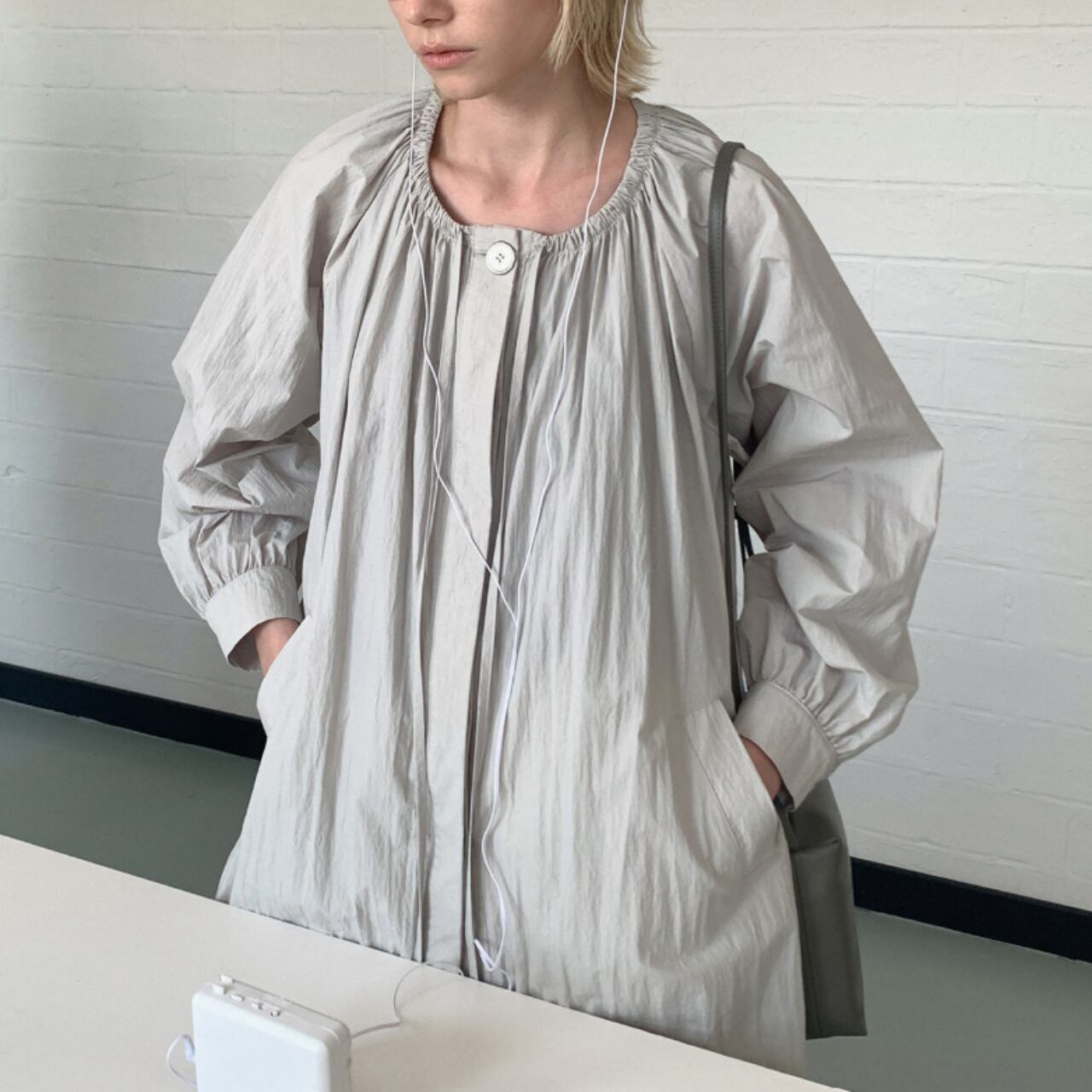 首元に寄せたギャザーが、動きに合わせてわずかに表情を変える。