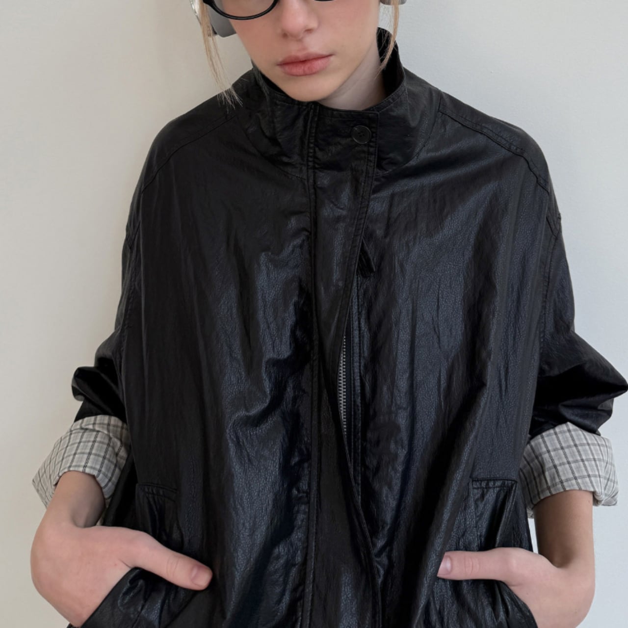 軽やかに羽織れる、レザーライクな質感のブルゾンジャケット。