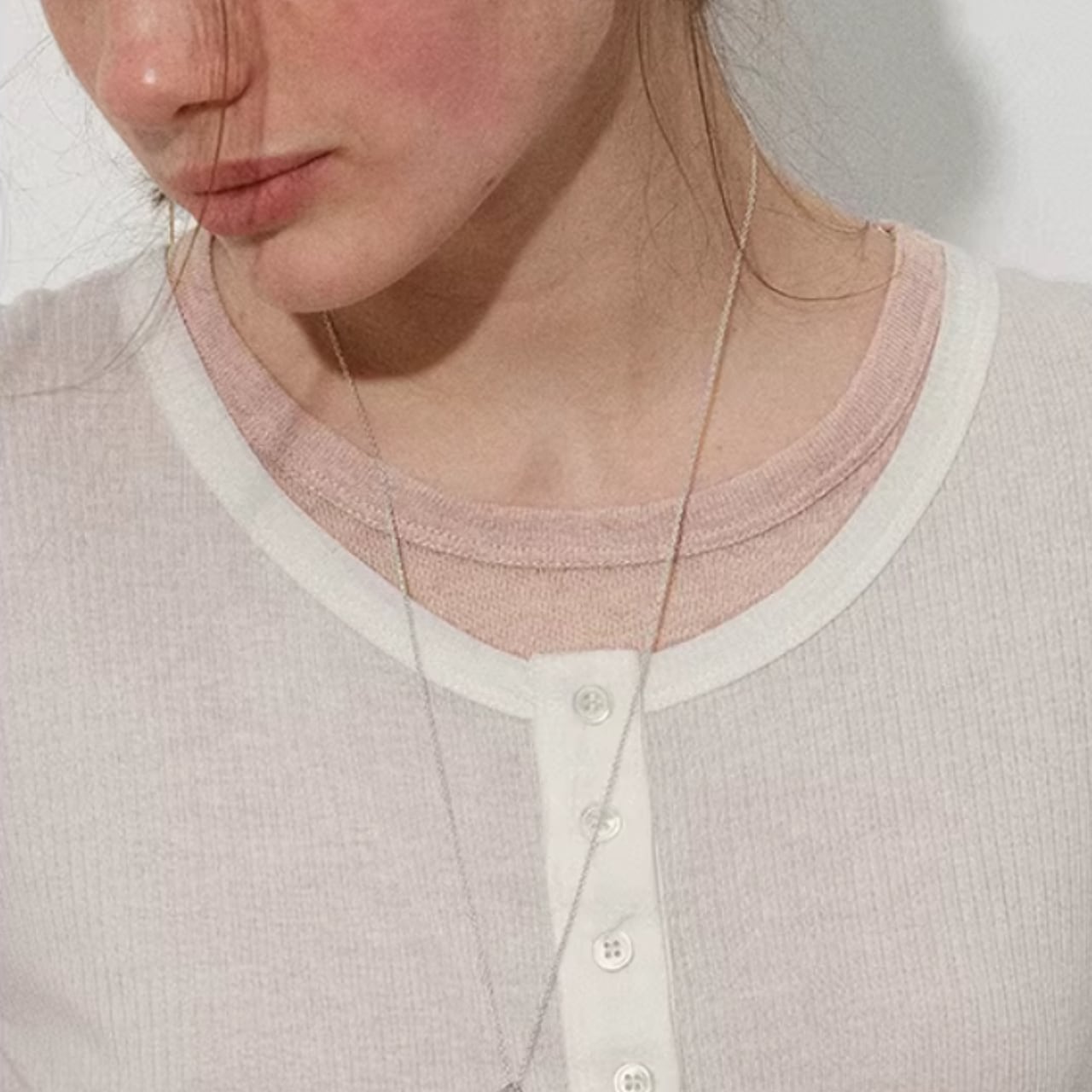 シンプルに見えながら、さりげない重なりが着こなしに奥行きをつくってくれます。