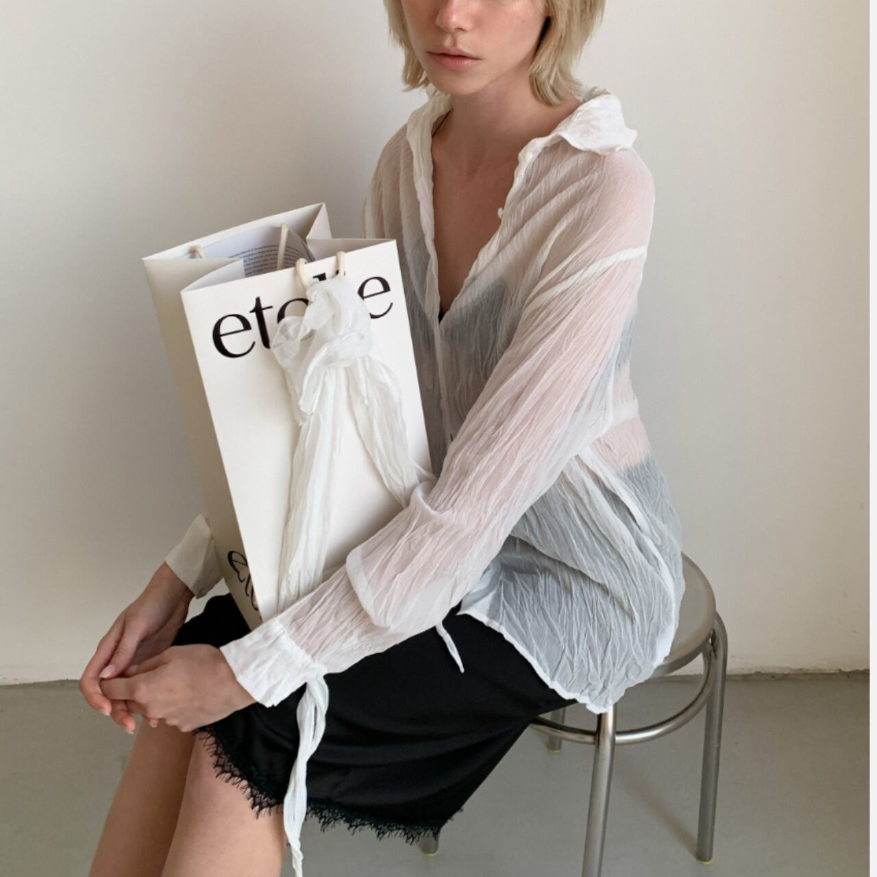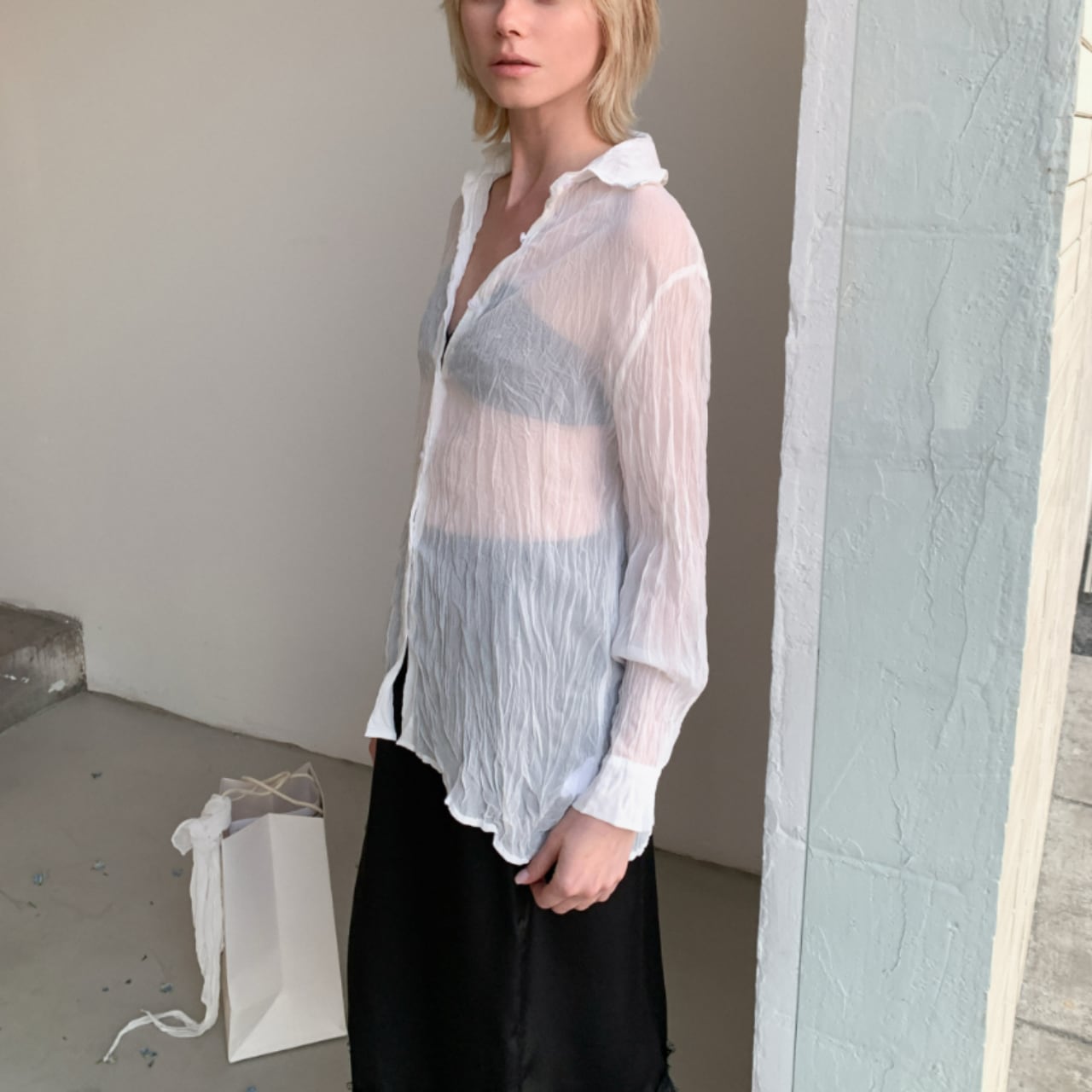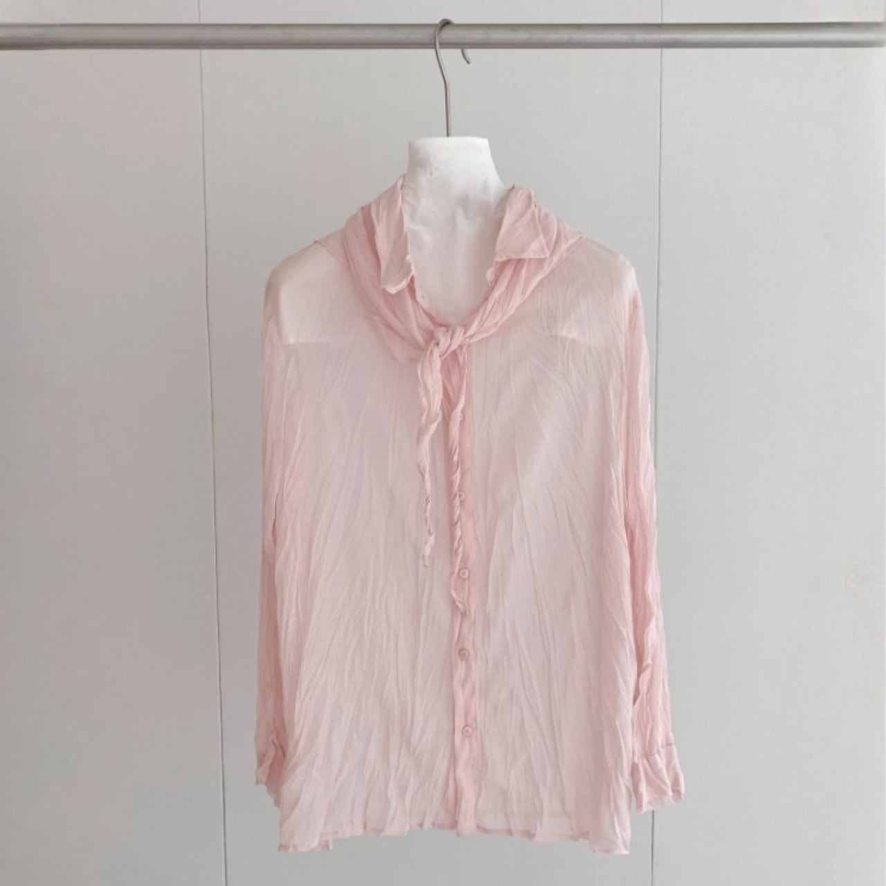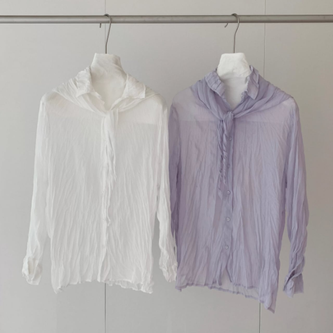 軽やかなシワ加工を施した、透け感のあるブラウス。(スカーフ付き)