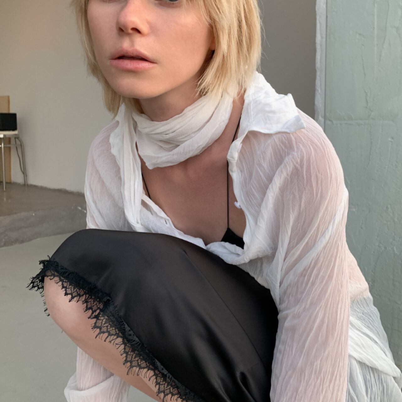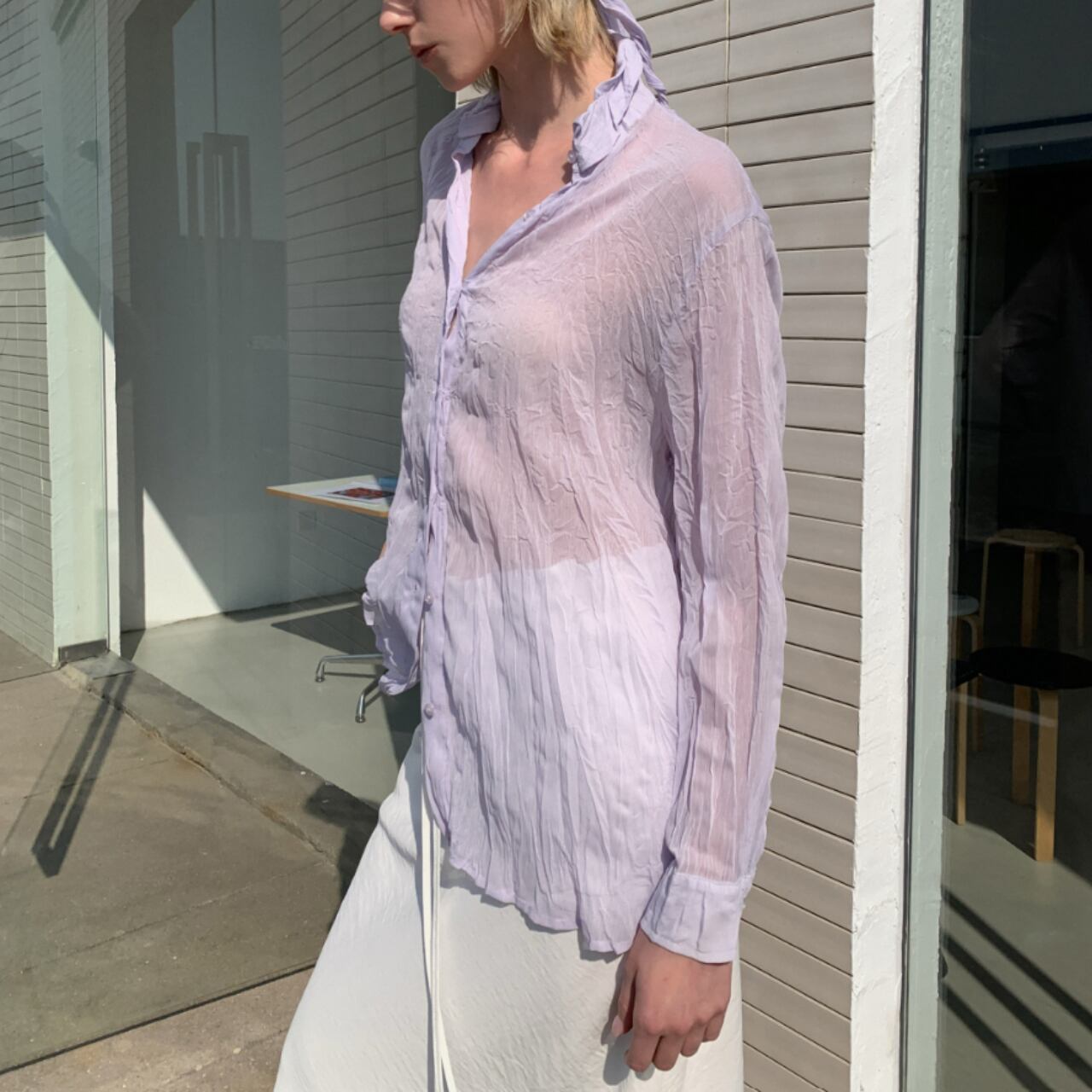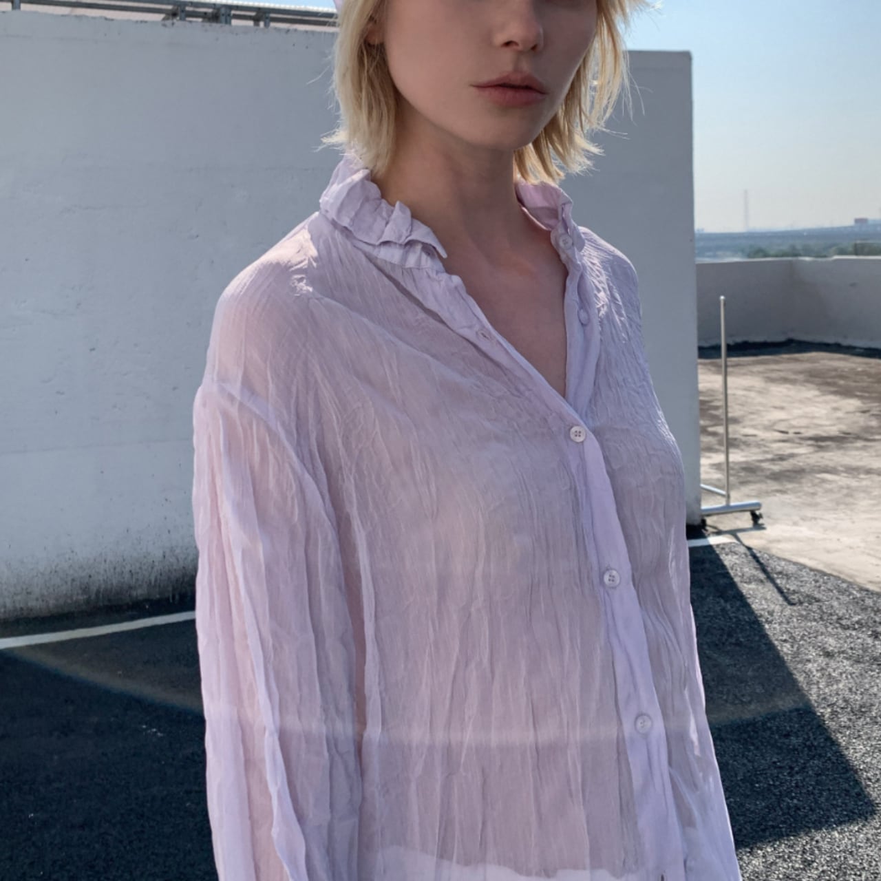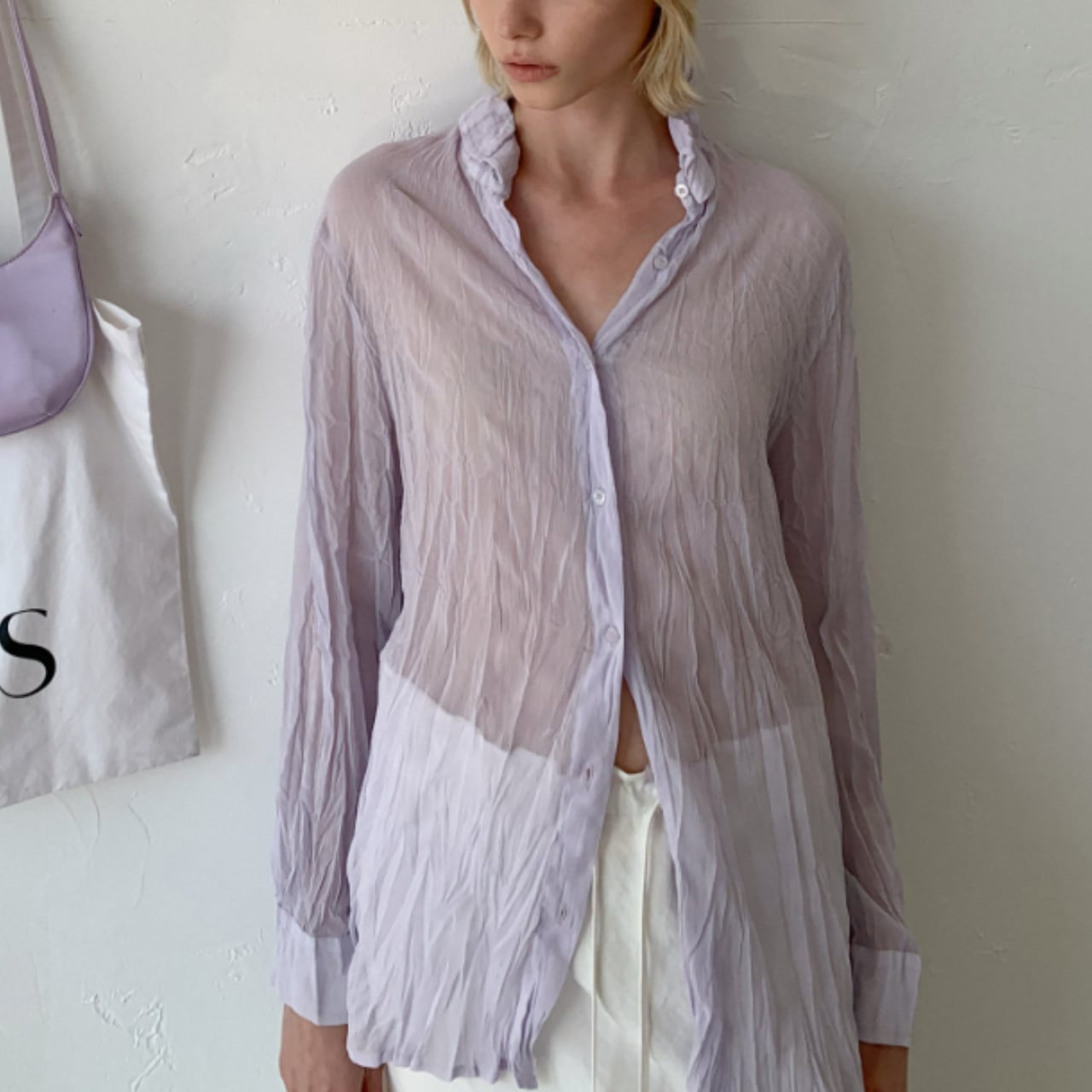 軽やかなシワ加工を施した、透け感のあるブラウス。(スカーフ付き)