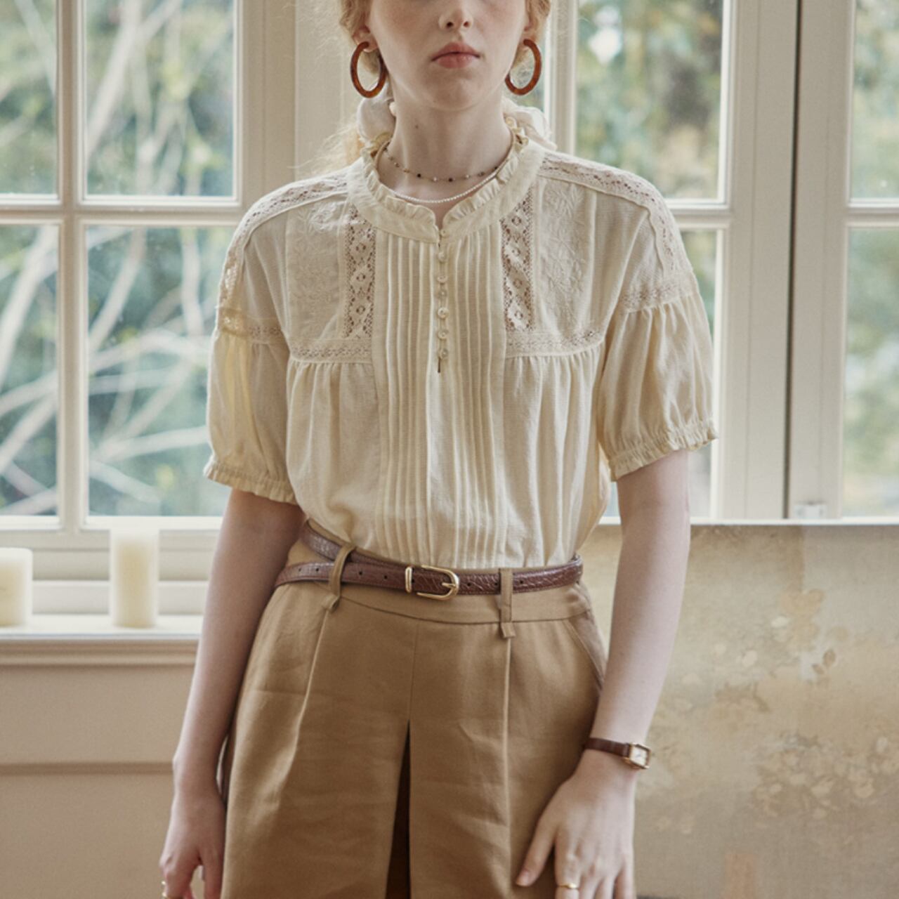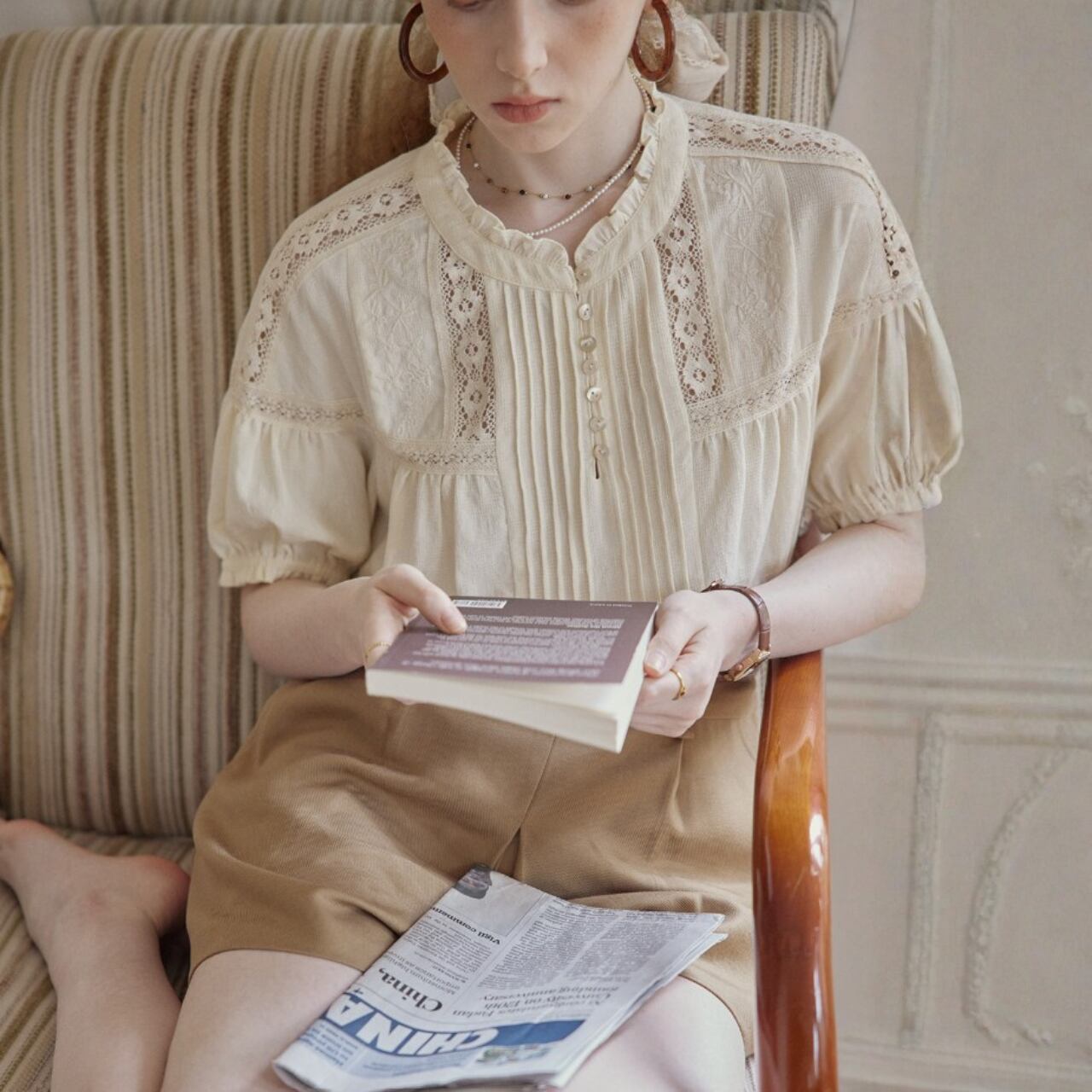日差しの入る部屋や、何気ない時間の中で着たくなるような、穏やかな空気を纏うブラウス。