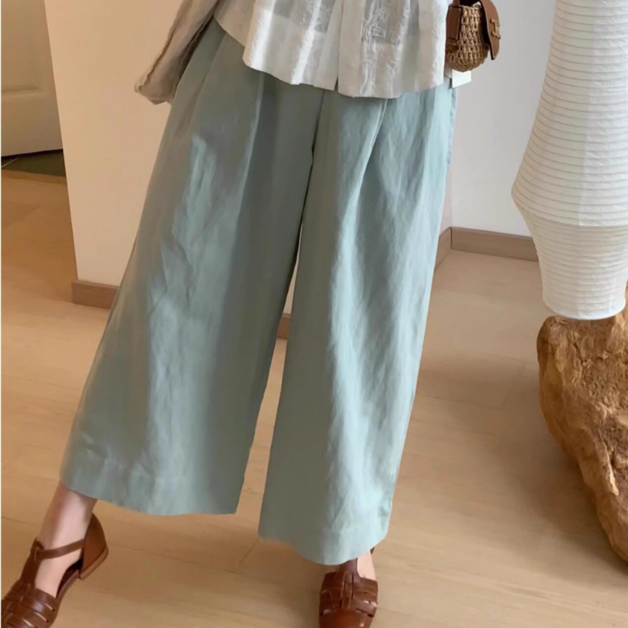 やわらかな色味は、生成りやベージュ、デニムなどとも自然に馴染み、コーディネート全体を落ち着かせる役割に。