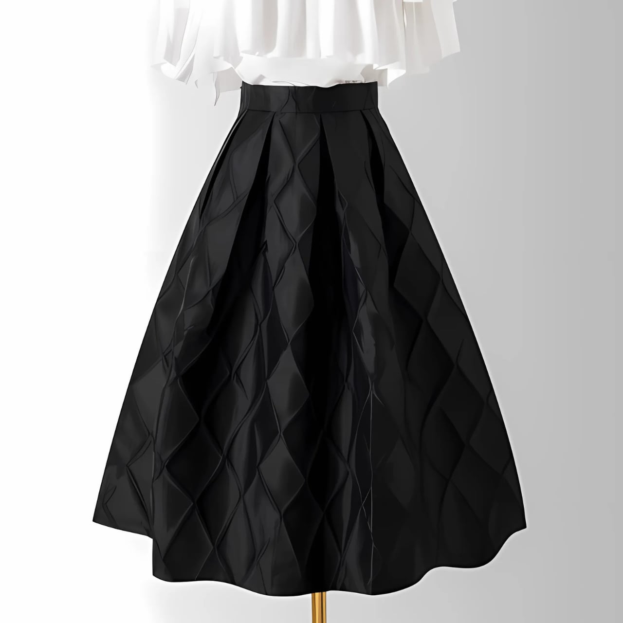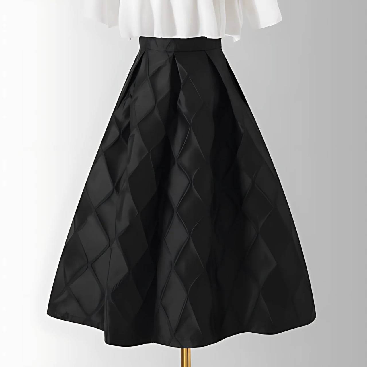 キルティング風デザインが特徴的なフレアミディスカート。
