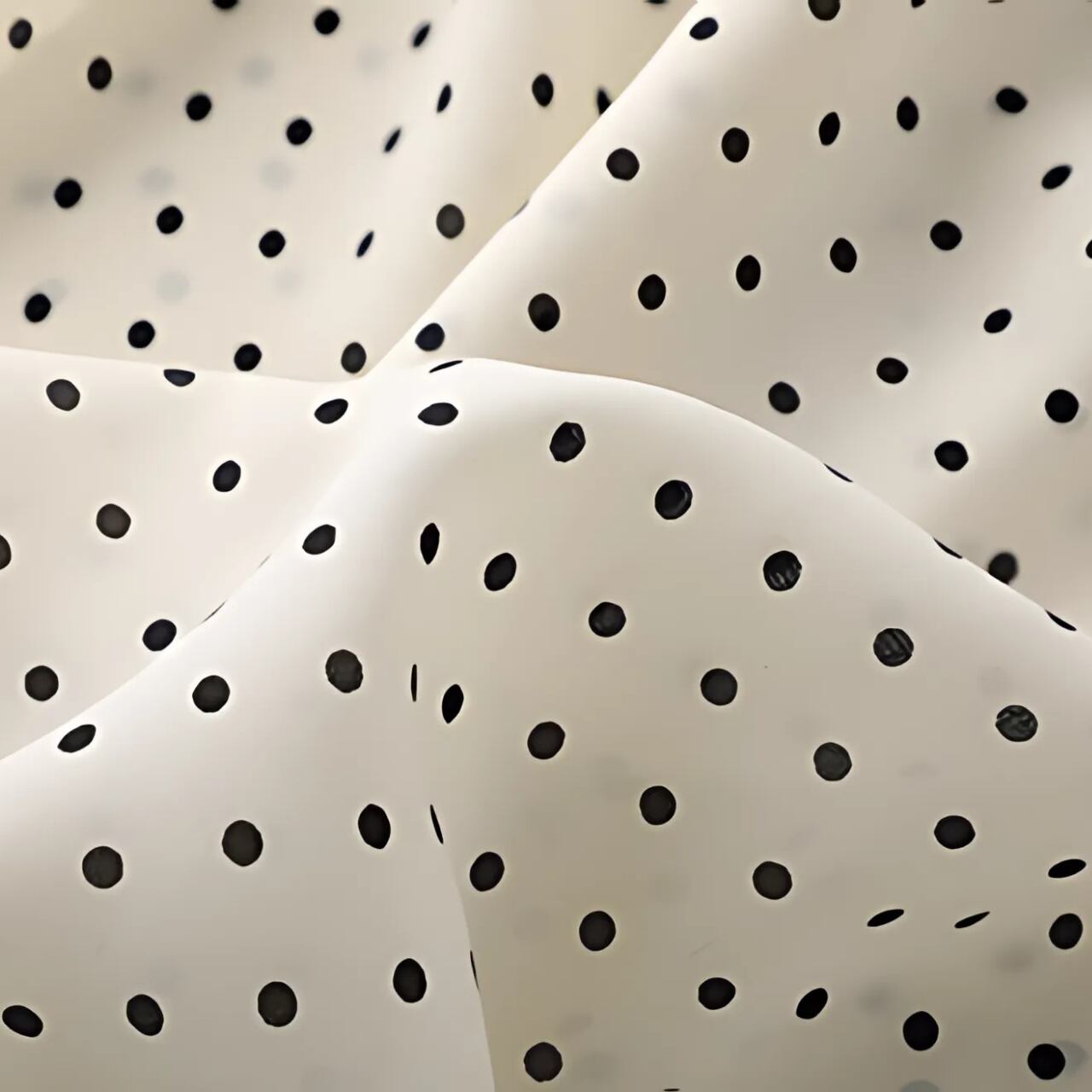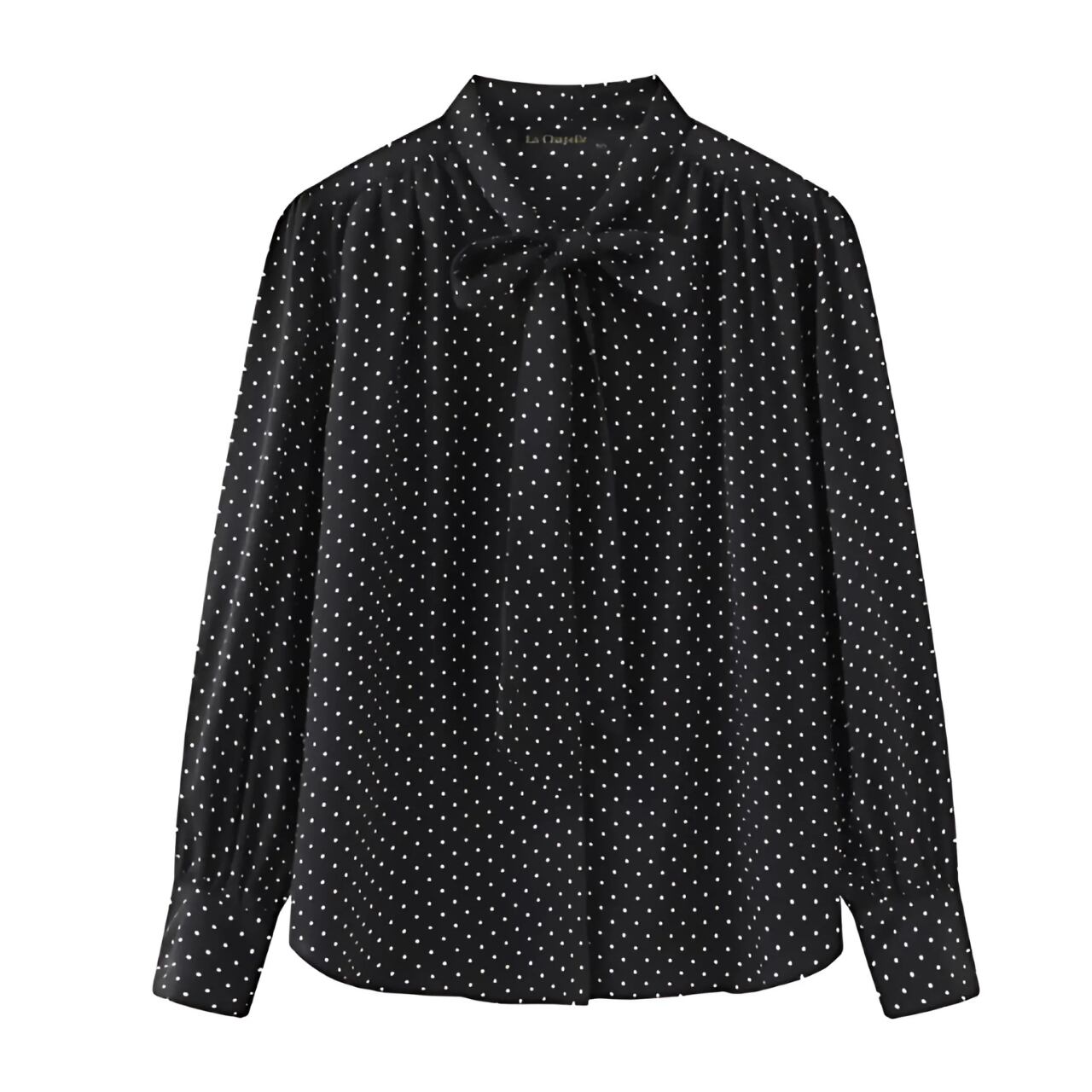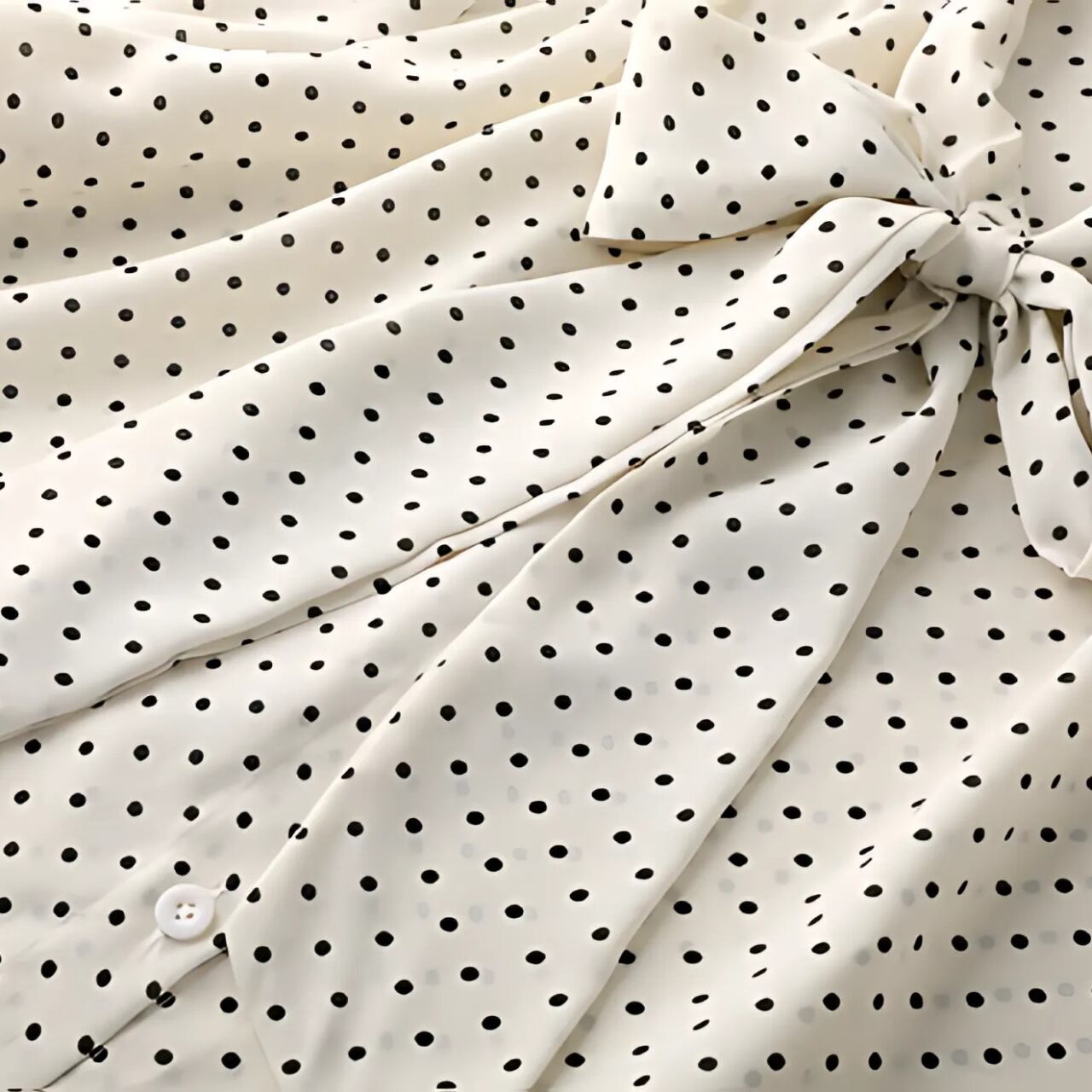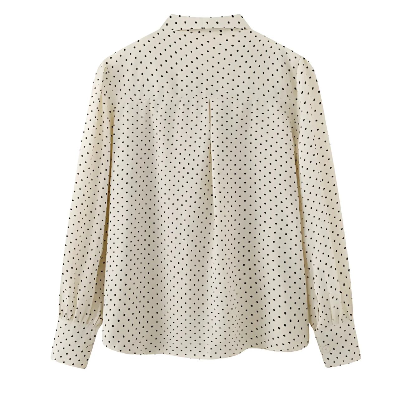 可愛らしさと上品さを兼ね備えた、ドット柄ボウタイブラウス。
