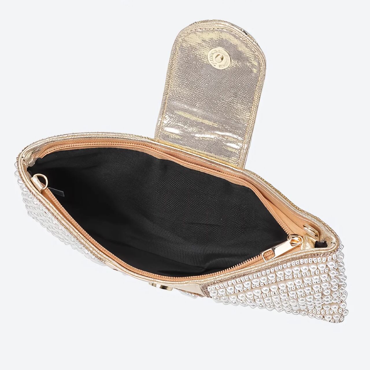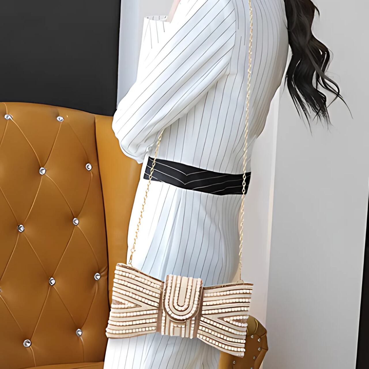 パールリボンモチーフが目を惹くクラッチバッグ。