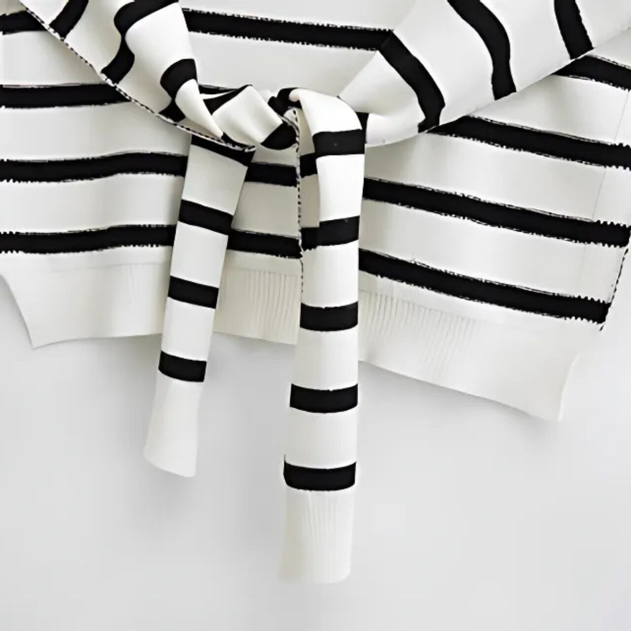 マリンスタイルを気軽に楽しめる、ボーダー柄のニットショールです。