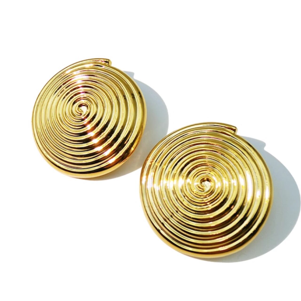 螺旋状のメタルが織りなす、モダンな円形スタッドピアス。
