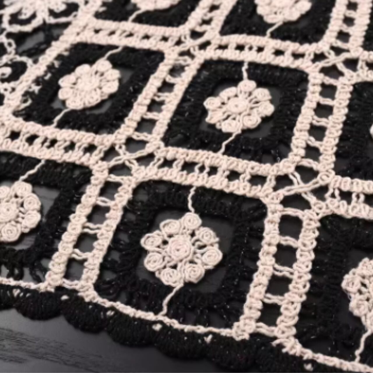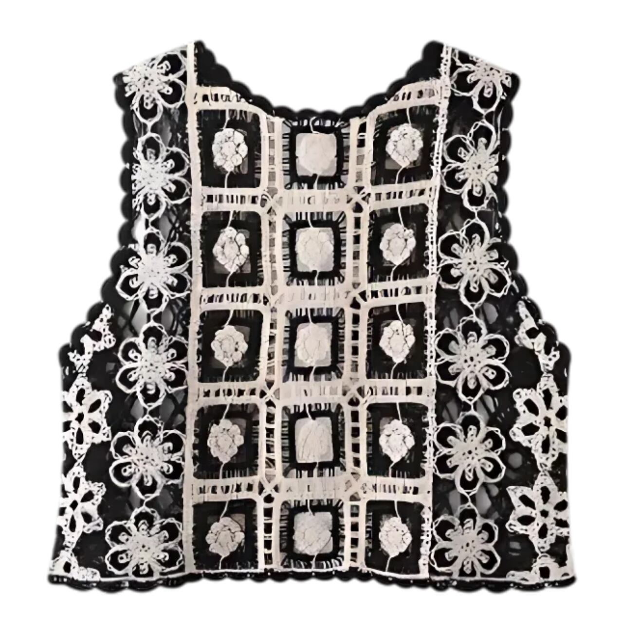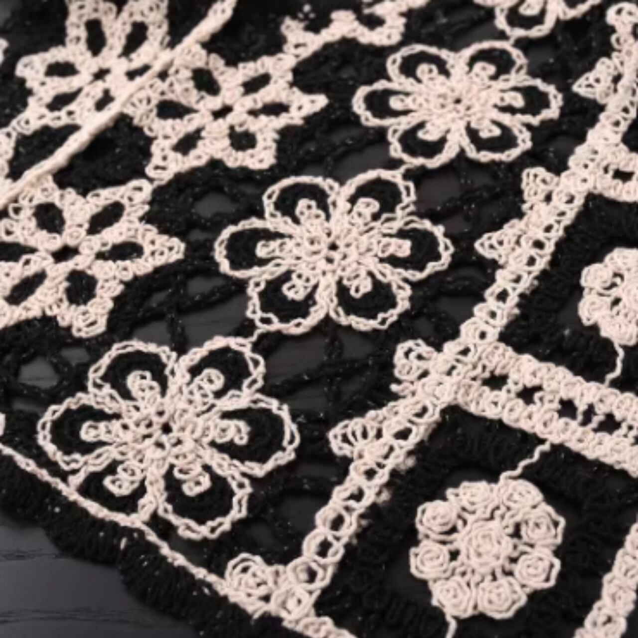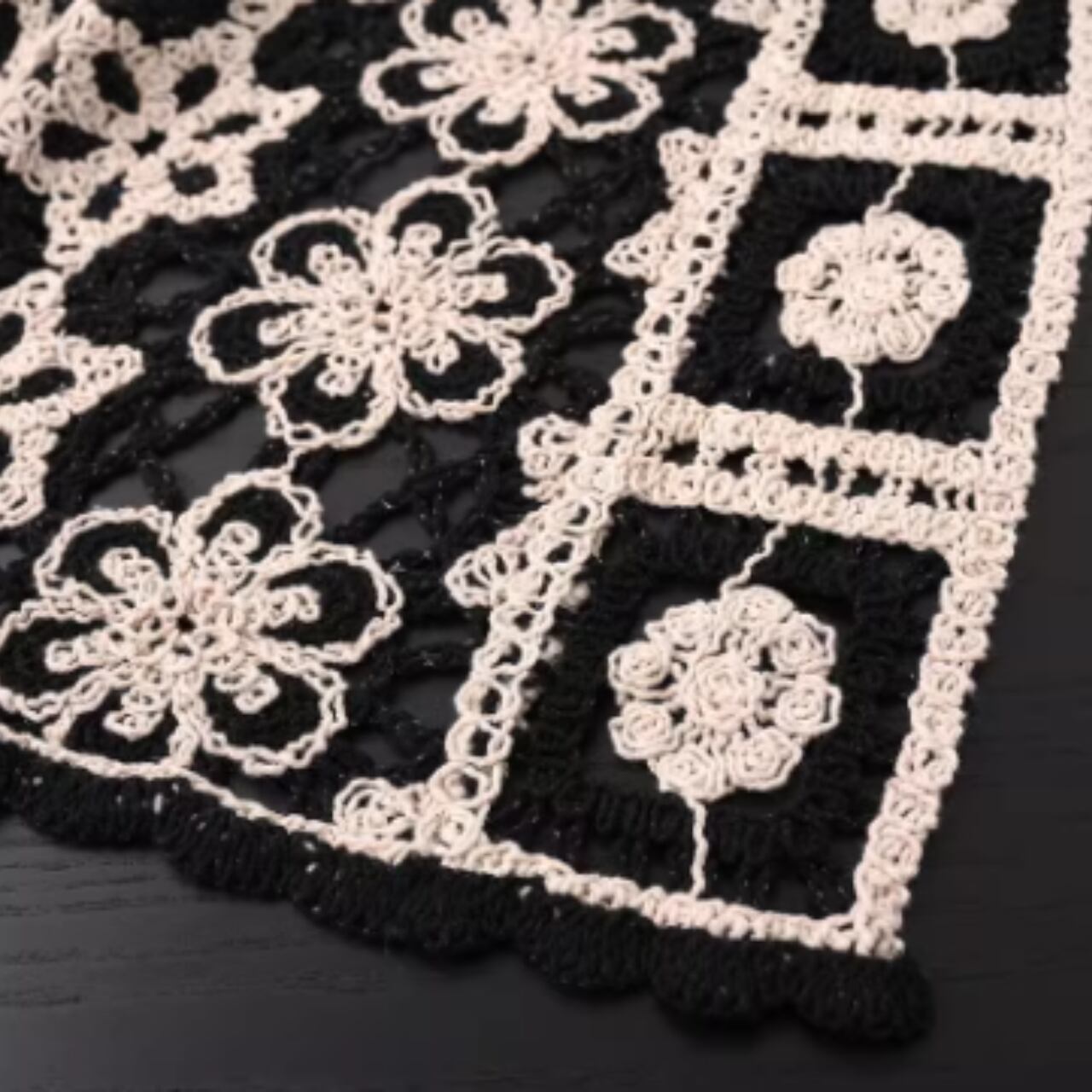 クロシェニットのフラワーパターンが魅力的なベスト。